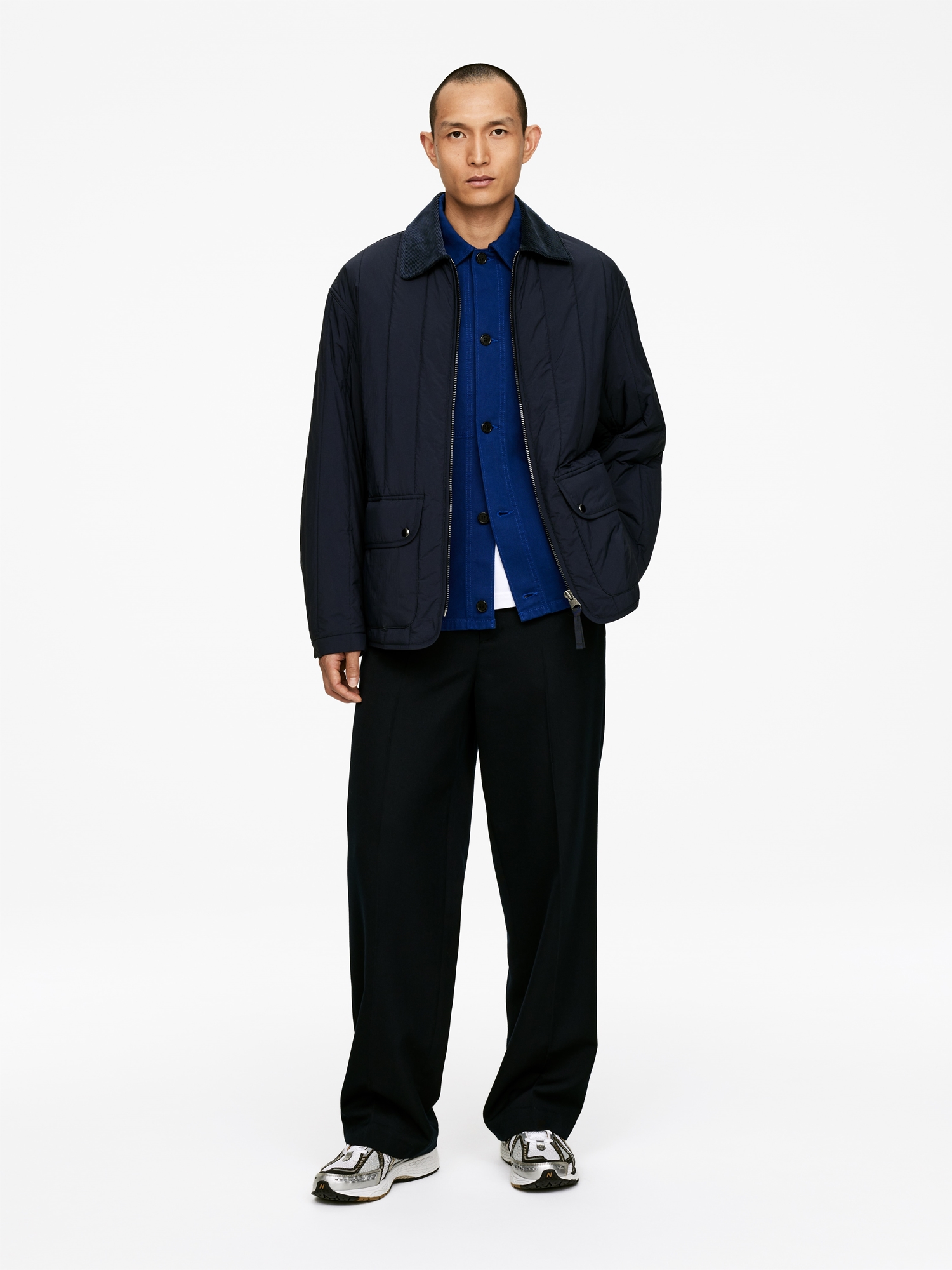 Стеганая куртка на подкладке с вельветовым воротником. Короткий фасон с застежкой на молнию и накладными карманами с клапанами. Обычный крой.