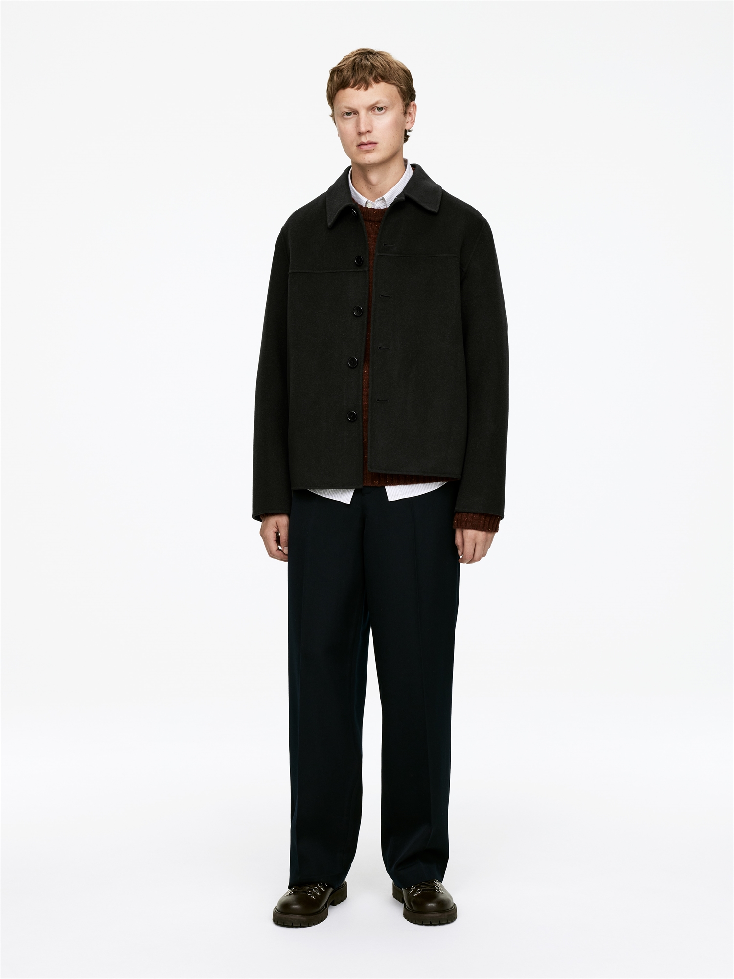 Короткий жакет из шерстяной ткани дублерина премиум-класса. Застежка на пуговицы Corozo и карманы в боковых швах. Рукава с подкладкой. Расслабленный крой. Ткань оболочки содержит 60% шерсти RWS (TE-00047206). Продукция, сертифицированная по стандарту ответственной шерсти (RWS), содержит шерстяное волокно с ферм, прошедших независимую сертификацию на соответствие требованиям по благополучию животных и землепользованию.