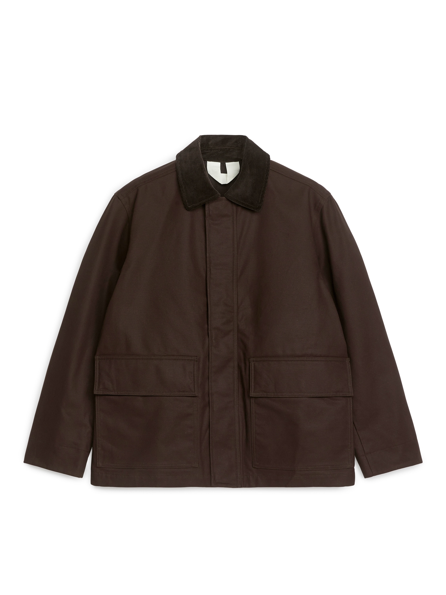 Куртка из хлопка с вощеной поверхностью. С воротником из вельвета и передней планкой с потайной молнией и застежкой на пуговицы. Два втачных кармана с клапанами на пуговицах. Внутренний карман. Полностью на подкладке. Обычный крой.