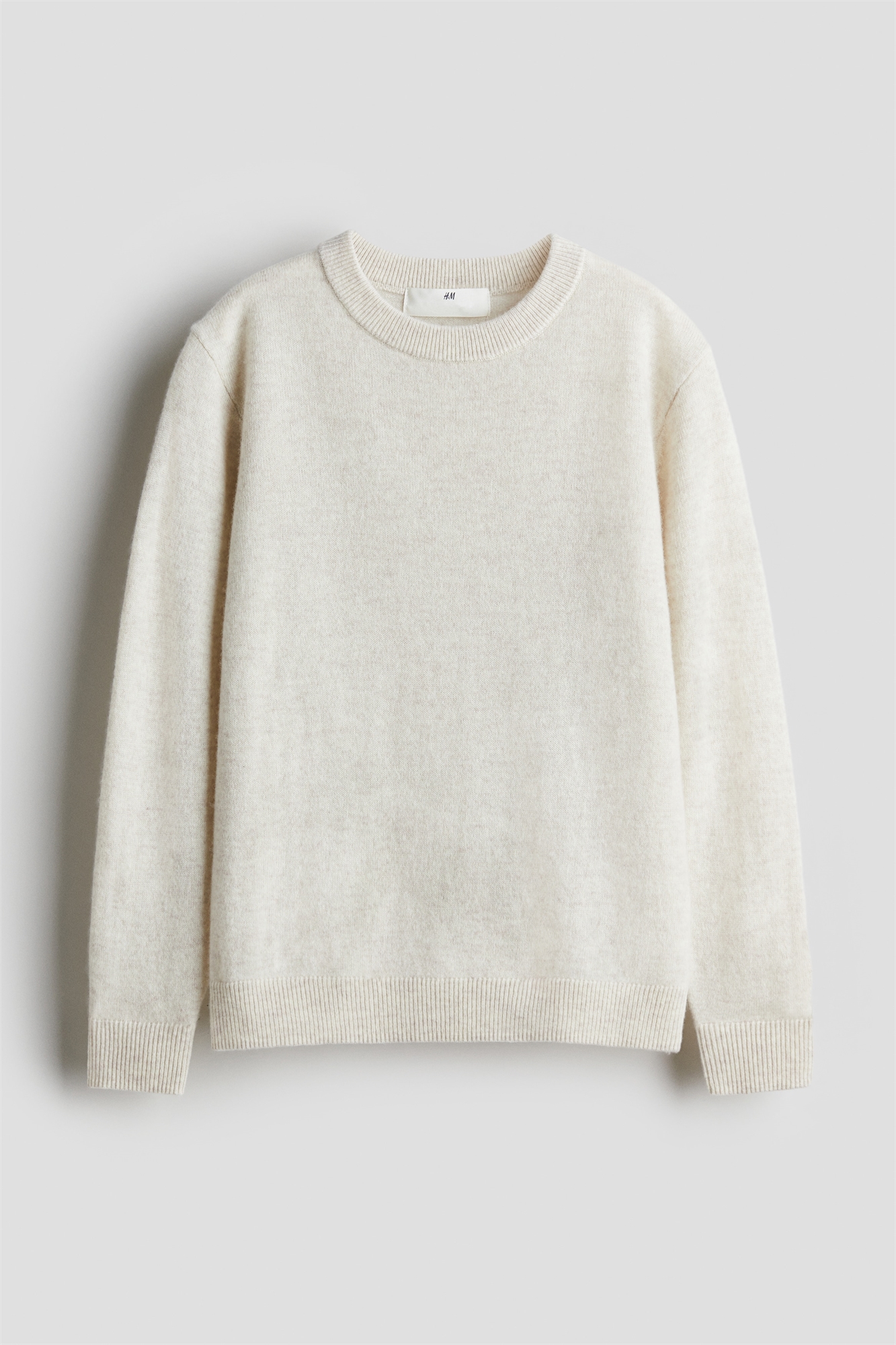 Джемпер из мягкого тонкого трикотажа, выполненного из смеси шерсти и кашемира. Круглый вырез в рубчик, спущенные плечи, манжеты и подол в рубчик.
