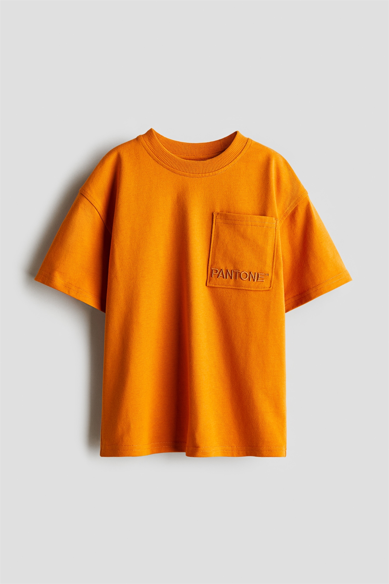 H&M x PANTONE. Свободная футболка из мягкого хлопкового джерси с нагрудным карманом с вышивкой. Круглый вырез с ребристой окантовкой, ярмо на спине и спущенные плечи.