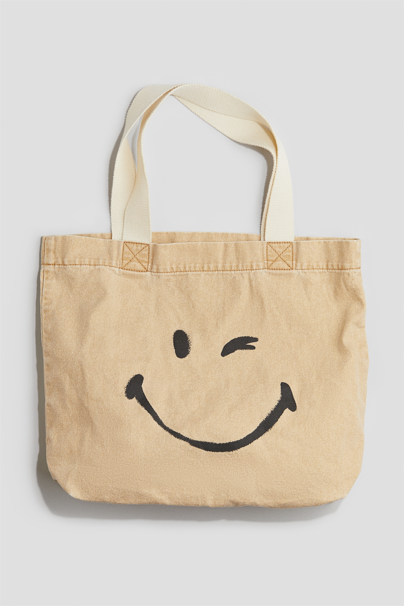 Сумка-шоппер из хлопкового холста с принтом и ручками в верхней части. Глубина 5 см. Ширина 35 см. Высота 38 см.