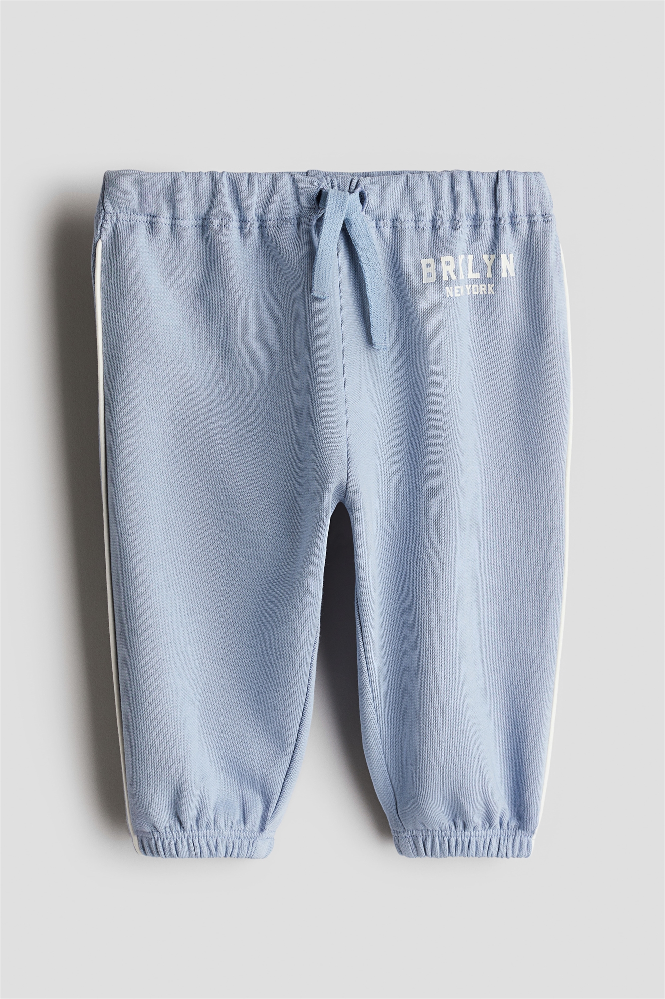 Джоггеры из легкой толстовочной ткани. Регулируемая резинка на талии с декоративным шнурком и эластичные манжеты.