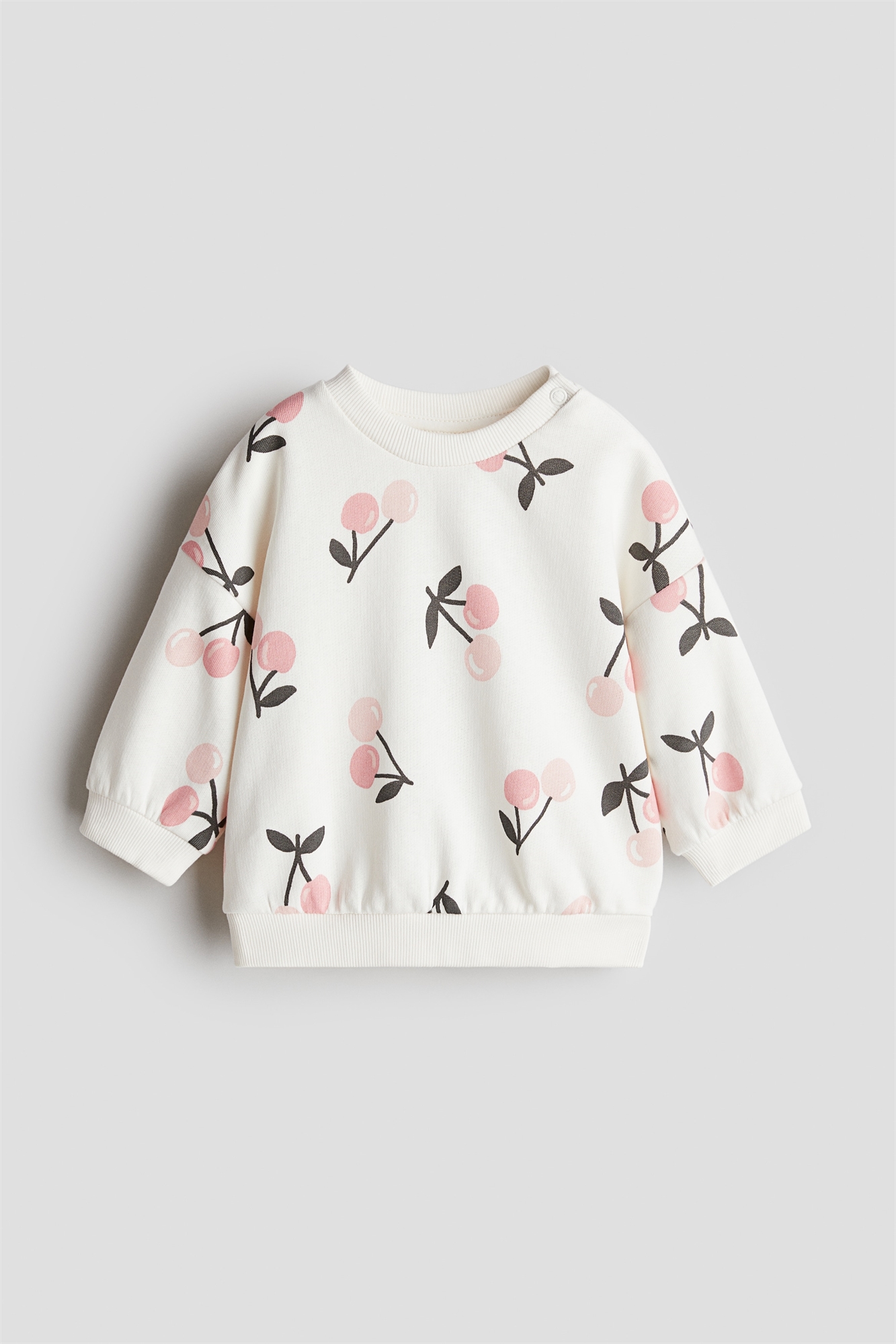Топ из легкого толстовочного материала с принтом, изготовленного из хлопка. Круглый ребристый вырез с застежками с одной стороны (кроме размеров 2-4Y), спущенные плечи и длинные рукава. Ребристые манжеты и подол.