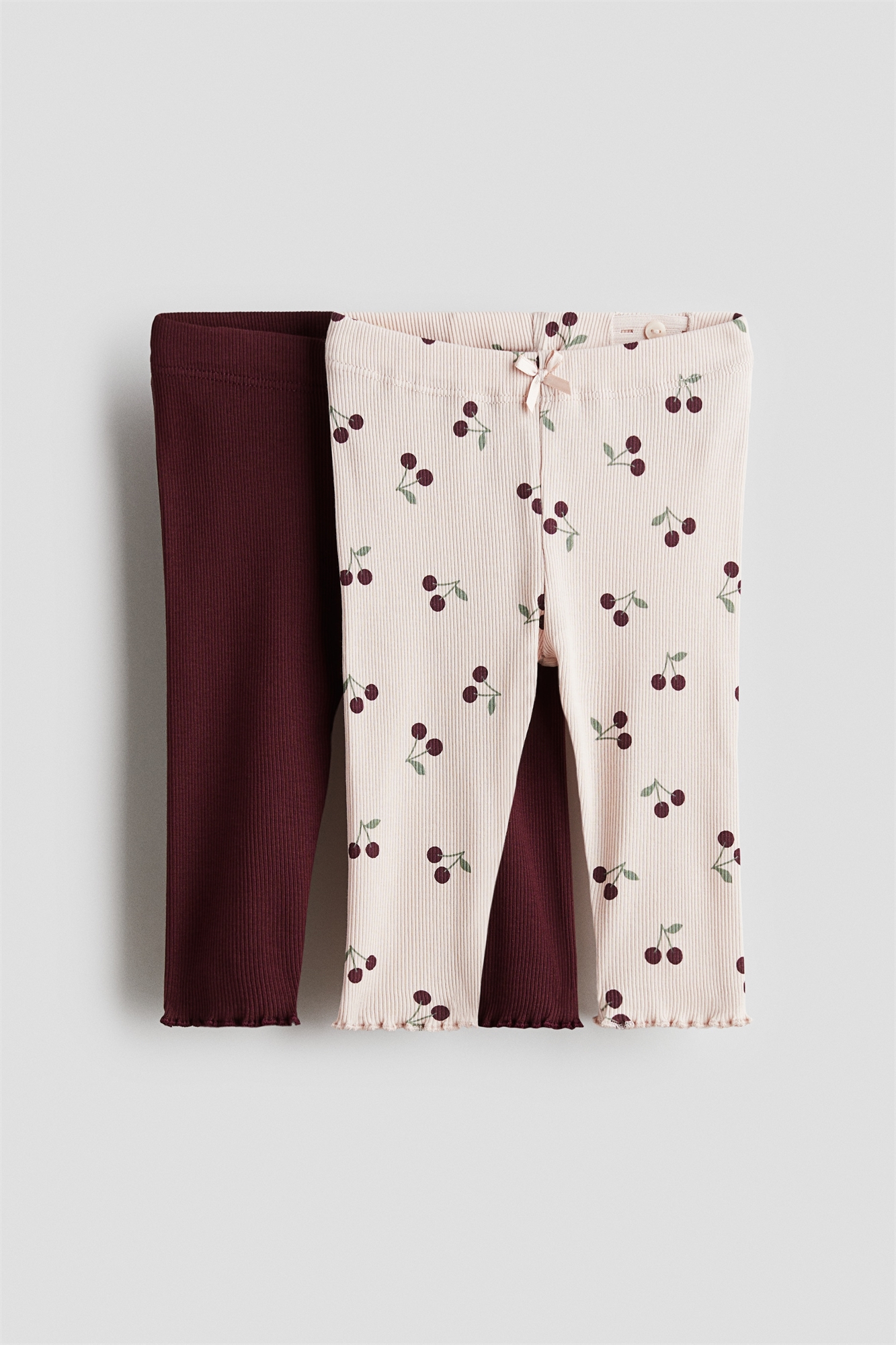 Леггинсы из мягкого, ребристого хлопкового джерси с декоративным атласным бантиком. Регулируемая эластичная талия и оверлочная отделка по краям.