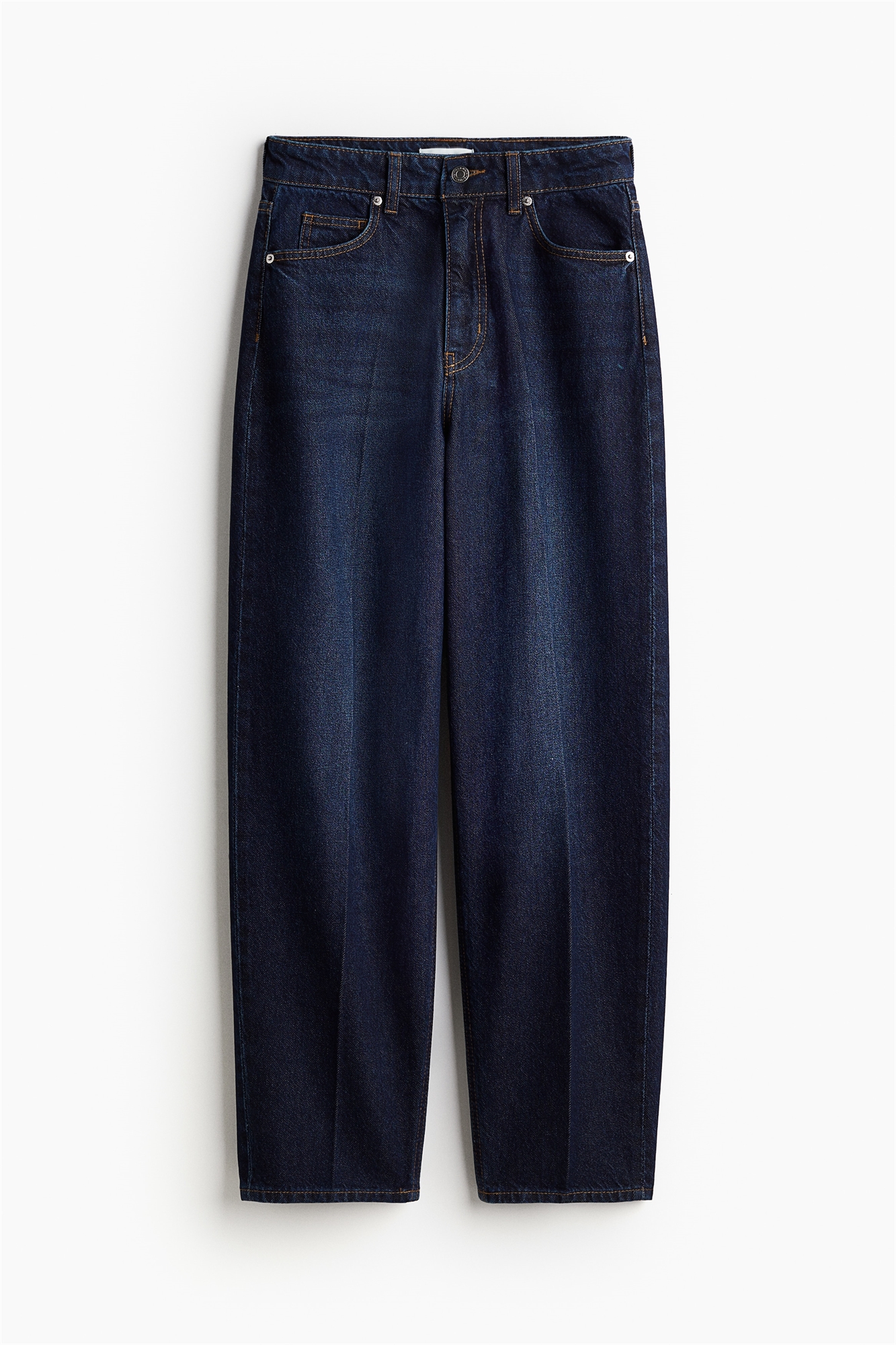 Джинсы с 5 карманами из прочного хлопкового денима с высокой талией и ширинкой на молнии с пуговицей. Зауженные к лодыжкам ноги со складками спереди и сзади.