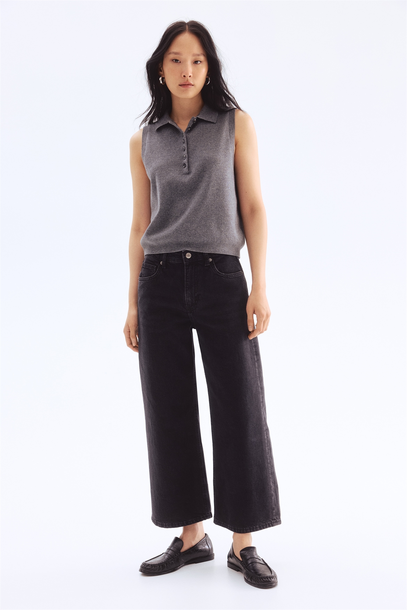 Джинсы с 5 карманами из слегка тянущегося хлопкового денима с высокой талией и ширинкой на молнии и пуговице. Широкие, длиной до щиколотки.