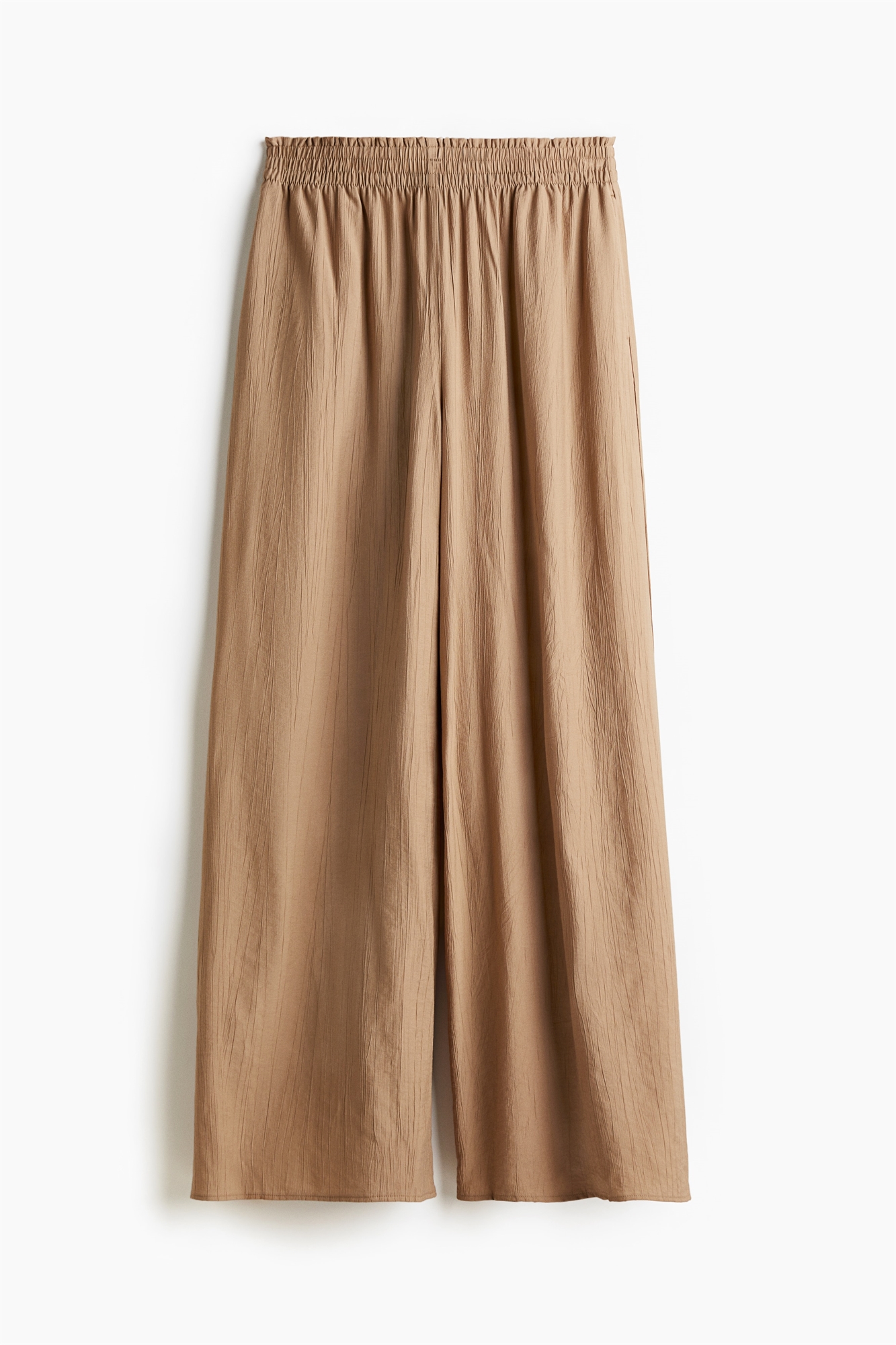 Свободные брюки свободного кроя с высокой эластичной талией и широкими штанинами.