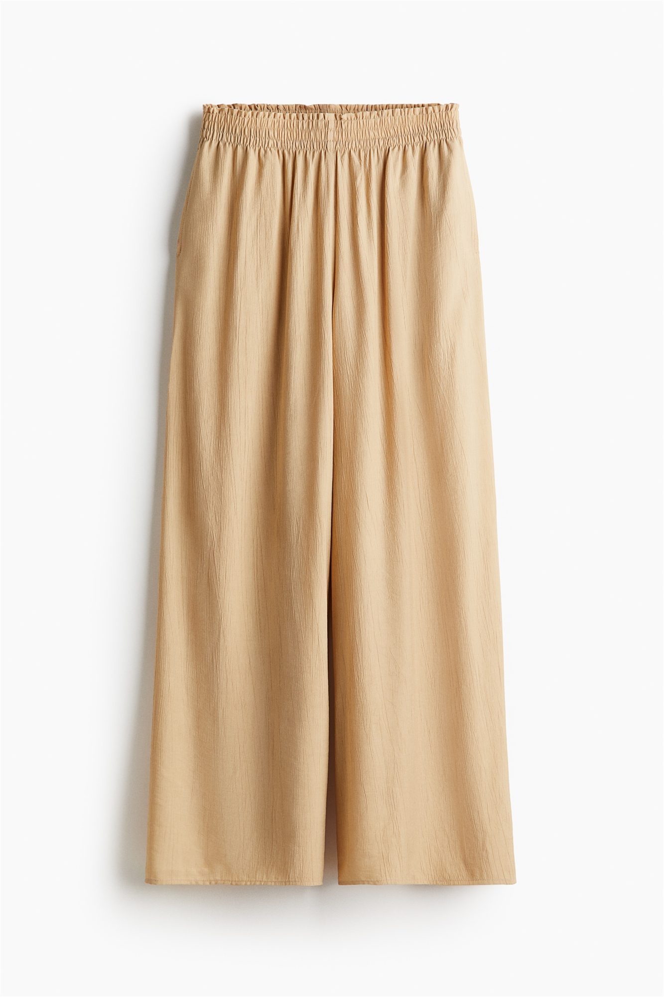 Свободные брюки свободного кроя с высокой эластичной талией и широкими штанинами.