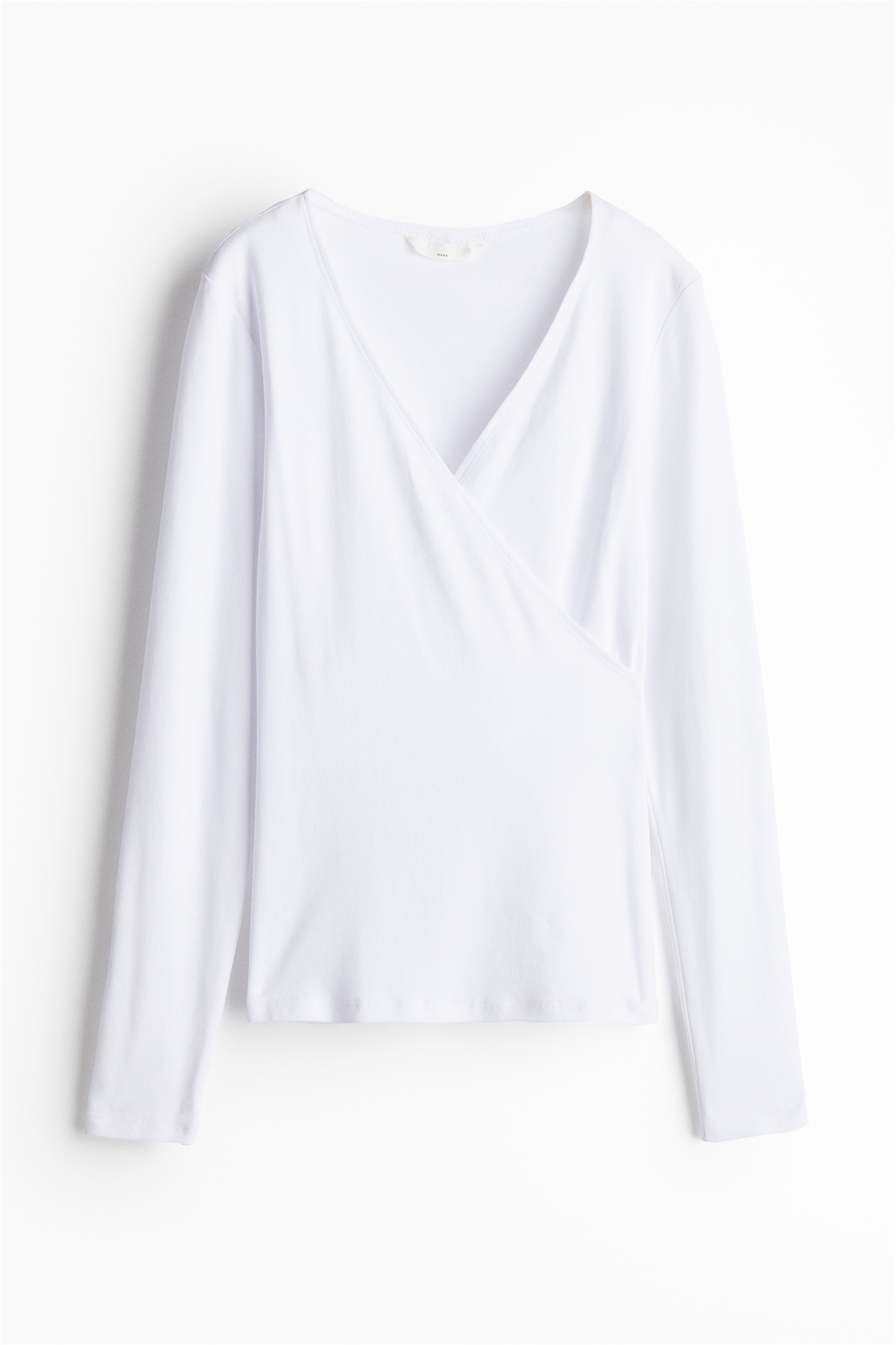 Топ для кормящих из ребристого хлопкового джерси с V-образным вырезом и длинными рукавами. Заворачивающийся верх и практичная внутренняя часть для облегчения доступа к груди.
