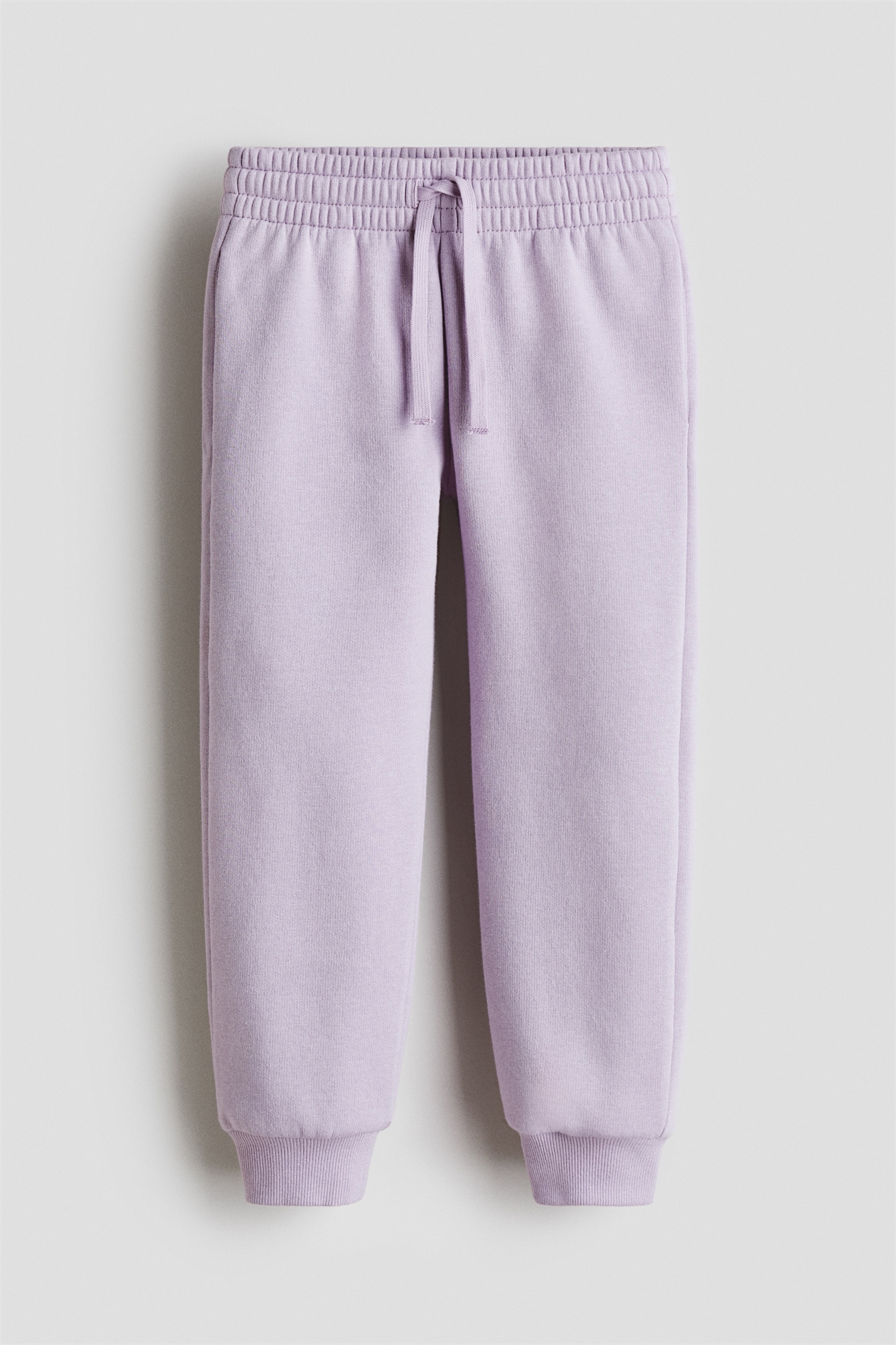 Джоггеры из толстовочной ткани с мягкой ворсистой внутренней стороной. Эластичный пояс с завязками, карманы в боковых швах и слегка зауженные ноги с ребристыми краями.