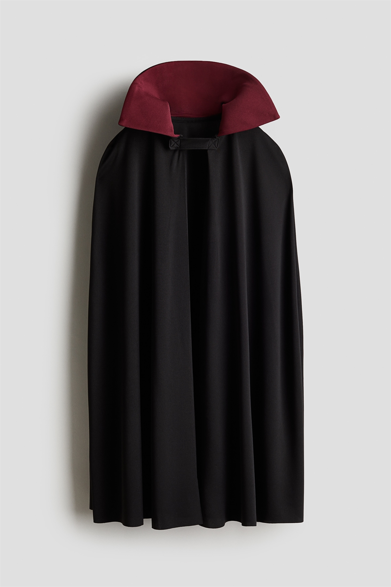 Маскарадный плащ Дракулы с большим, слегка набитым воротником-стойкой акцентного цвета и застежкой на крючок и петлю спереди. Эта накидка создана для долгого использования и любви - заботьтесь о ней, передавайте по наследству, ремонтируйте и перерабатывайте.