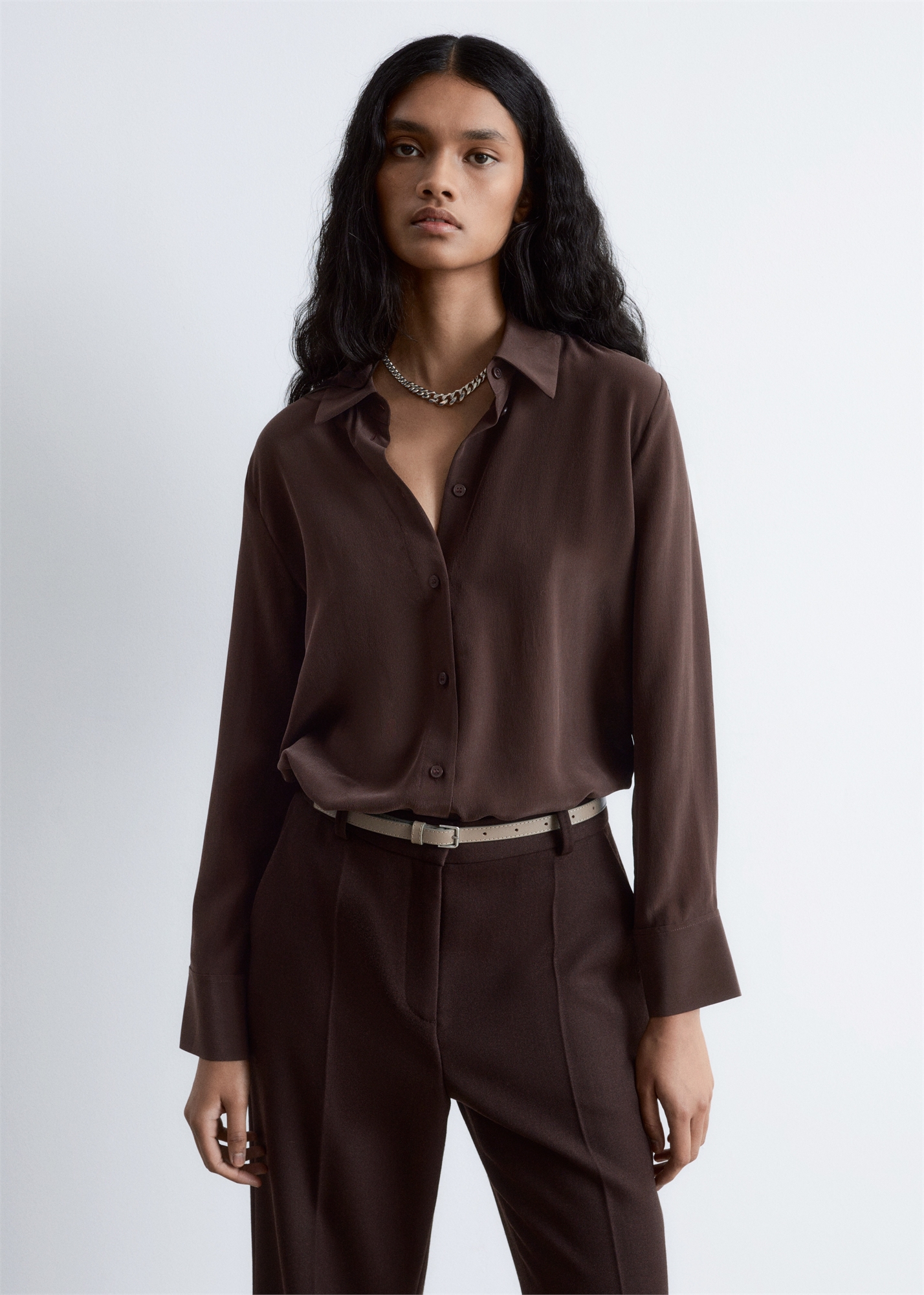 Рубашка с длинными рукавами сшита из шелка. Отделана классическим отложным воротником. • Застежка на семь пуговиц • Манжеты на пуговицах • Длина рубашки: 67,5 см / 26,6" (EU 36 / UK 8 / US 4)