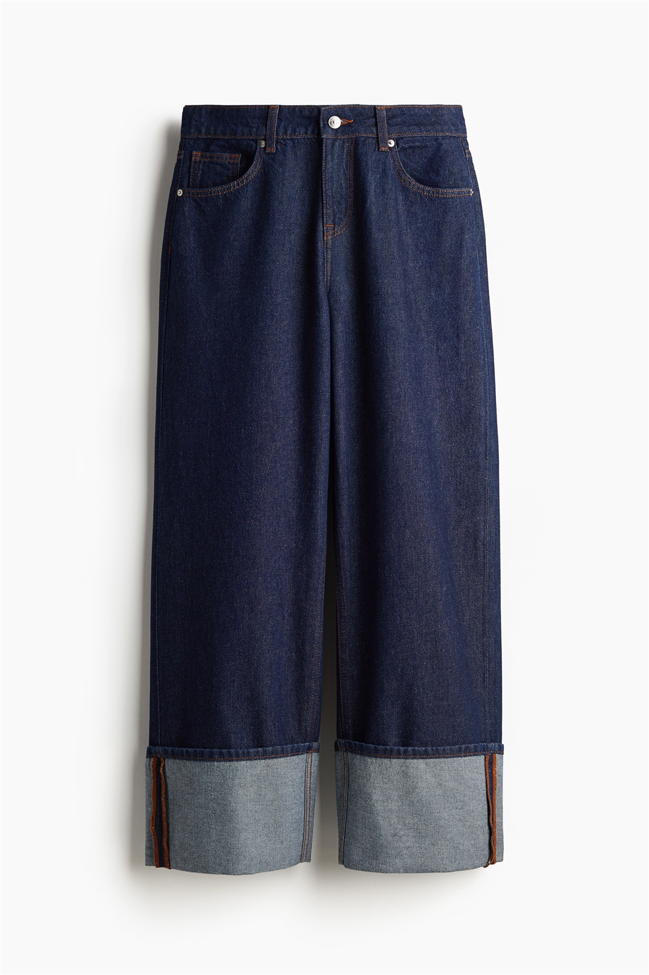 Джинсы с 5 карманами из жесткого хлопкового денима, который сначала кажется твердым, но затем смягчается и ослабевает при носке. Широкие штанины со свободной посадкой от талии до бедра и мешковатой посадкой от бедра до подола. Заниженная талия, ширинка на молнии и пуговице. Широкие подвороты на подоле. Удлиненная длина, созданная для того, чтобы ниспадать по ноге с эффектом укладки. Широкий силуэт, который всегда выглядит привлекательно.