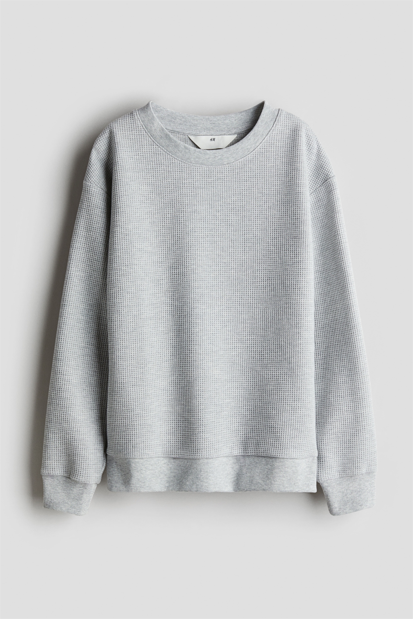 Толстовка из вафельного хлопкового джерси с круглым вырезом в рубчик, манжетами и подолом в рубчик.