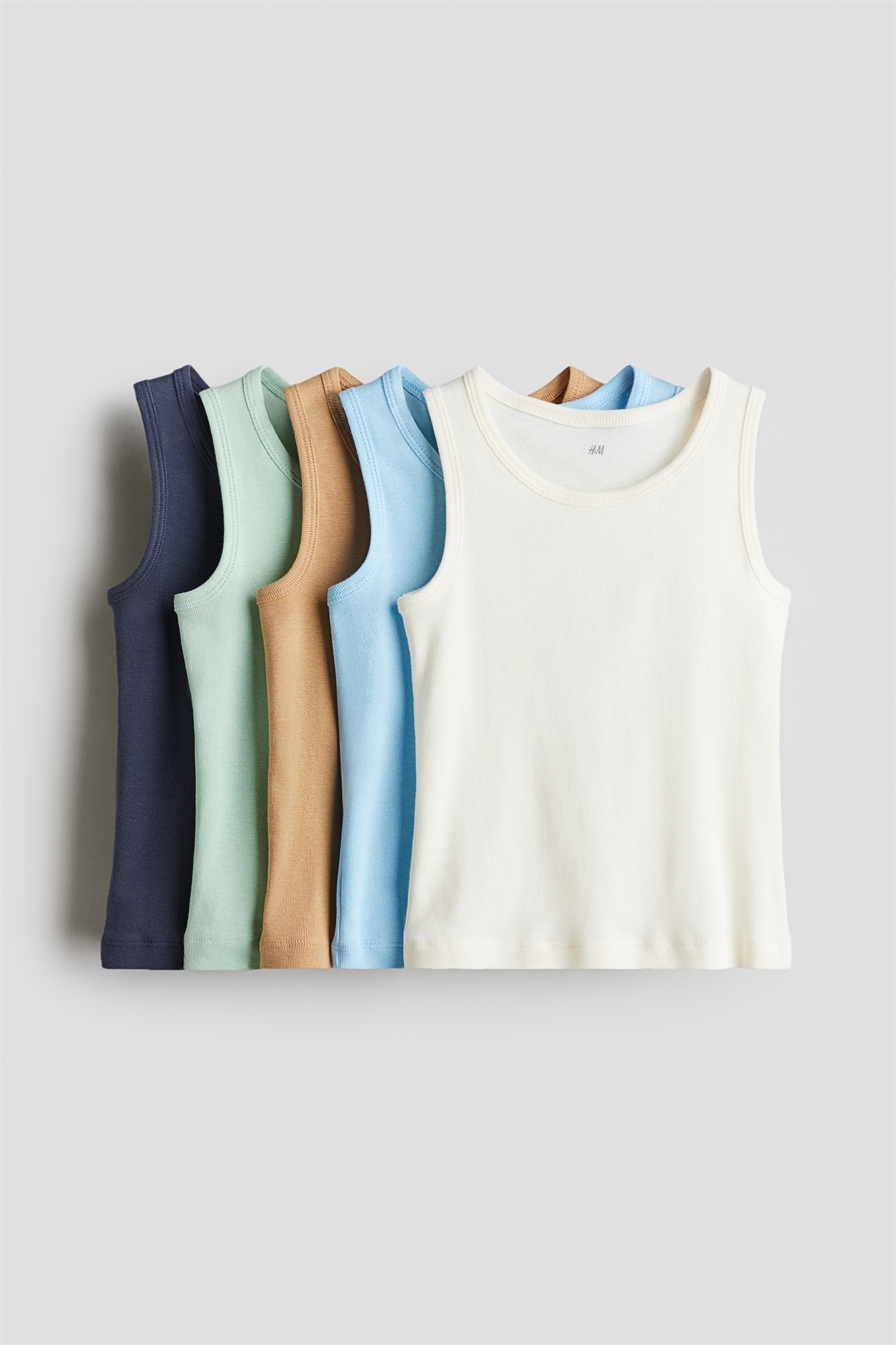 Майки из мягкого хлопкового джерси с ребристой отделкой по вырезу горловины и проймам.