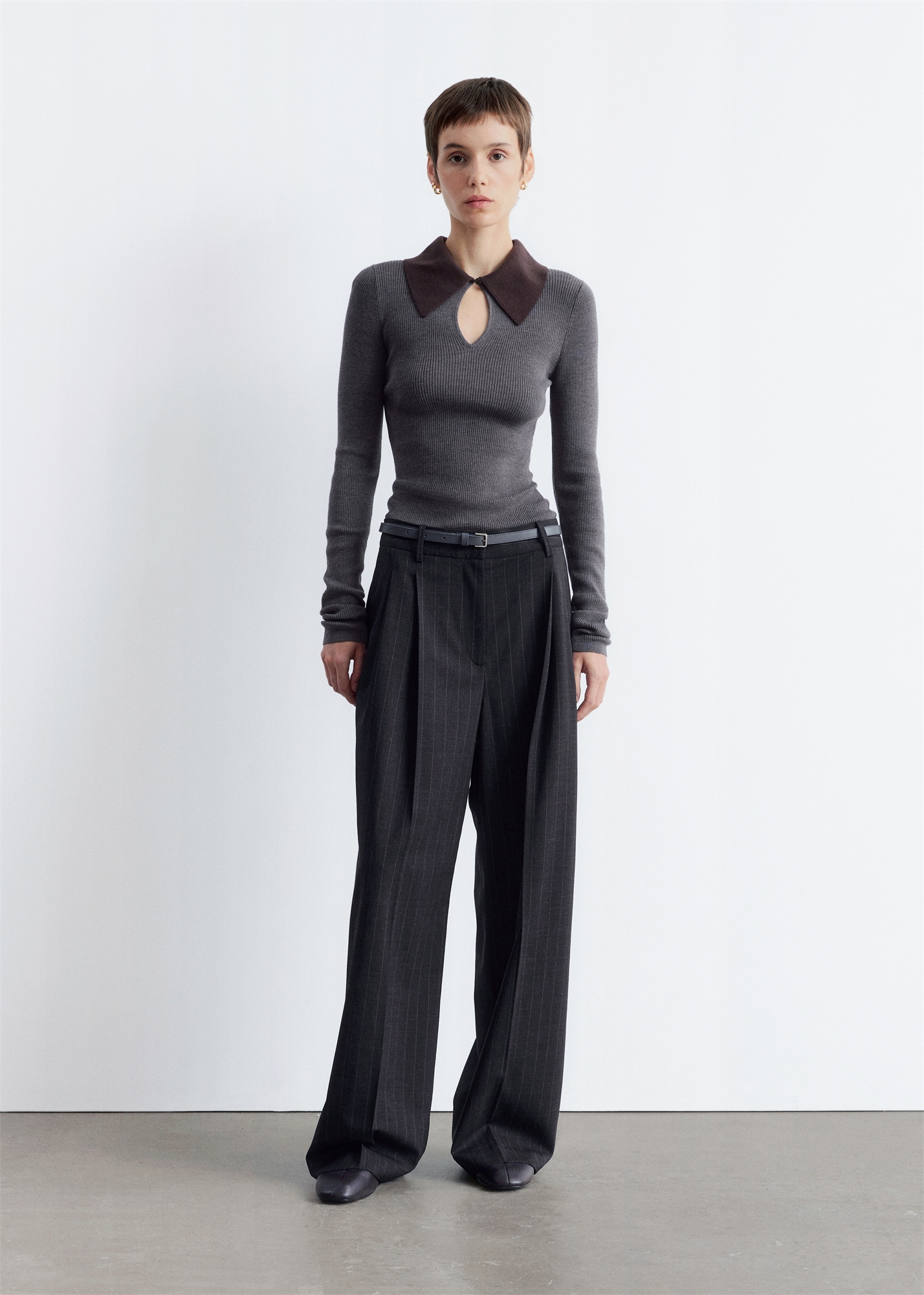 Эти брюки сшиты из шерстяной смеси и имеют свободный силуэт, длинные широкие ноги подчеркнуты складками. Они имеют косые карманы в боковых швах, два накладных кармана сзади и ширинку на молнии с застежкой на крючок и планку. 96% шерсти RWS TE-00047206 Длина по линии бедер: 76 см / 29,9" (EU 36 / UK 8 / US 4)