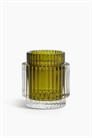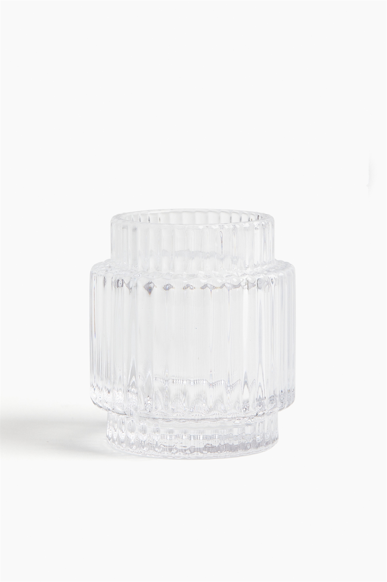 Подсвечник из стекла с ребристой поверхностью. Диаметр 7 см. Высота 8 см.