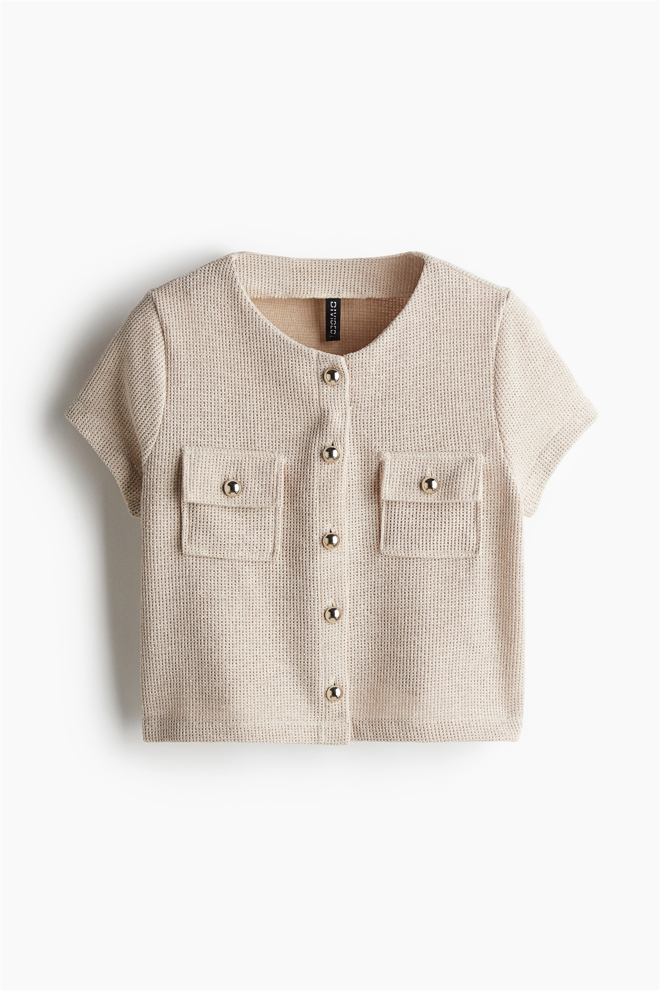 Короткий топ из вафельного джерси с круглым вырезом, короткими рукавами и пуговицами спереди. Накладные нагрудные карманы с клапаном и пуговицей и прямой подол.