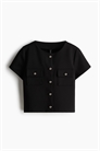 Короткий топ из вафельного джерси с круглым вырезом, короткими рукавами и пуговицами спереди. Накладные нагрудные карманы с клапаном и пуговицей и прямой подол.