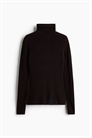 Слегка удлиненный, облегающий фигуру джемпер тонкой вязки из мягкой смеси шерсти и кашемира. Воротник, слегка спущенные плечи и удлиненные рукава.