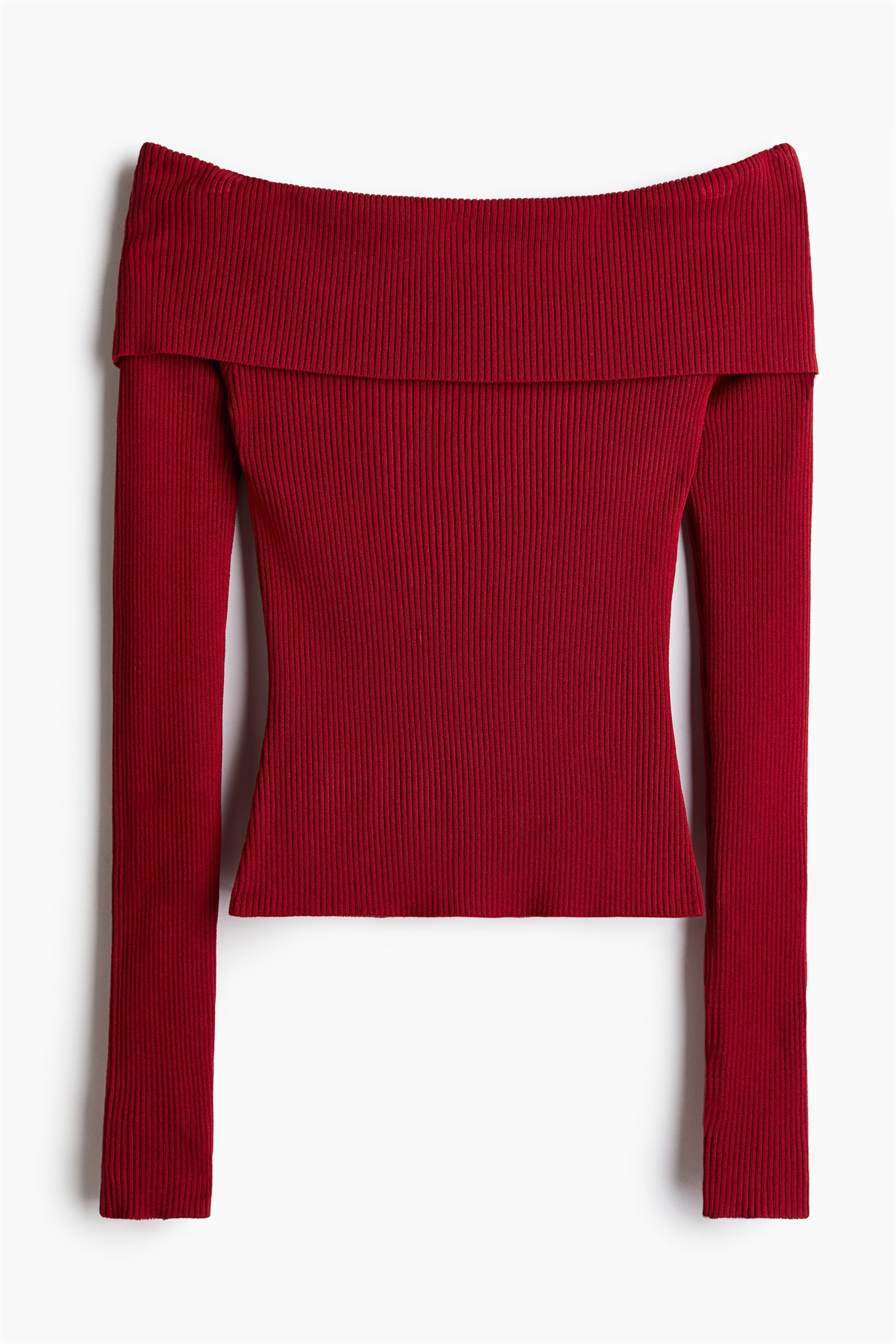 Короткий, приталенный топ без плеч из мягкого трикотажа в рубчик с длинными рукавами и широкой складкой в верхней части.