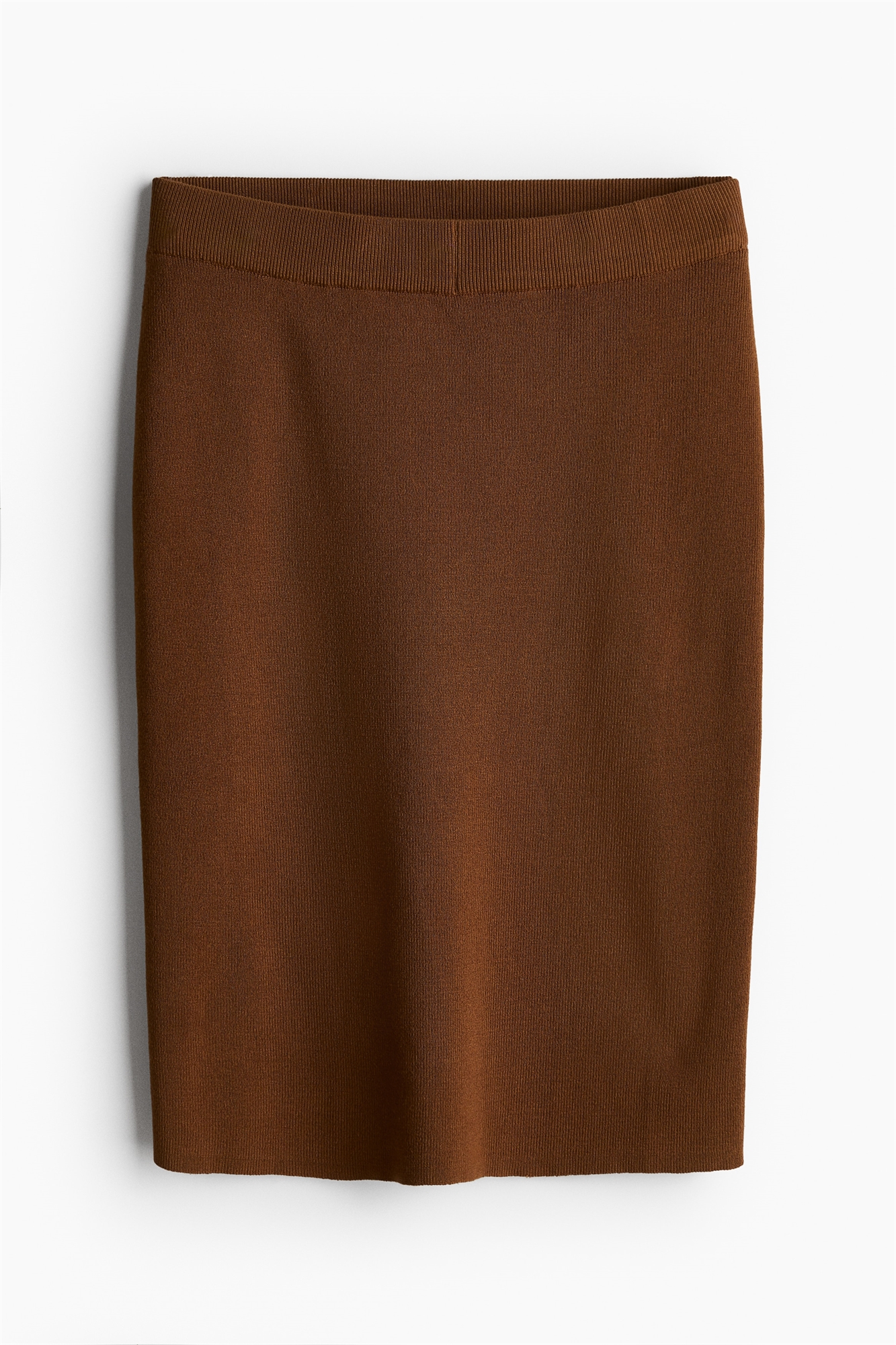 Приталенная юбка длиной до колена из мягкого трикотажа в рубчик с высокой талией и эластичной отделкой.