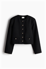 Короткий жакет из тканого материала с круглым вырезом и пуговицами спереди. На подкладке.