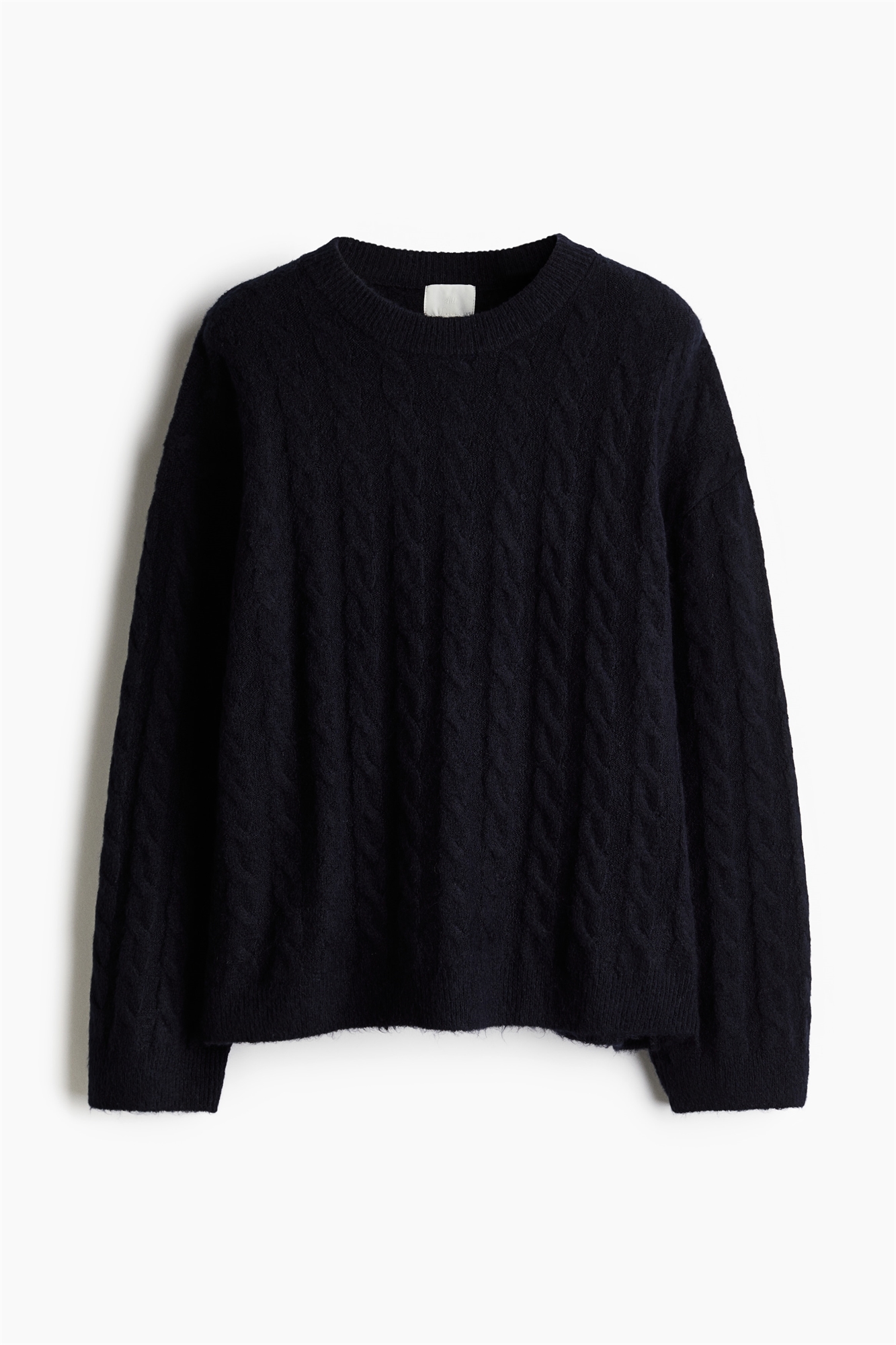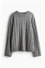 Джемпер свободного кроя из мягкого трикотажа в рубчик с круглым вырезом в рубчик, спущенными плечами и длинными рукавами. Ребристые манжеты и подол.
