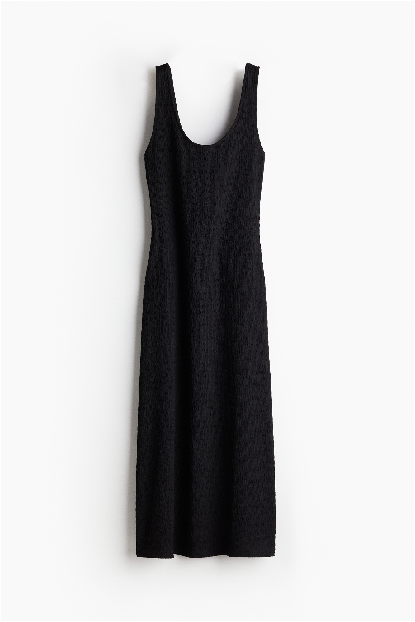 Облегающее платье-макси из фактурного джерси с широкими бретелями и вырезом-лодочкой спереди и сзади.