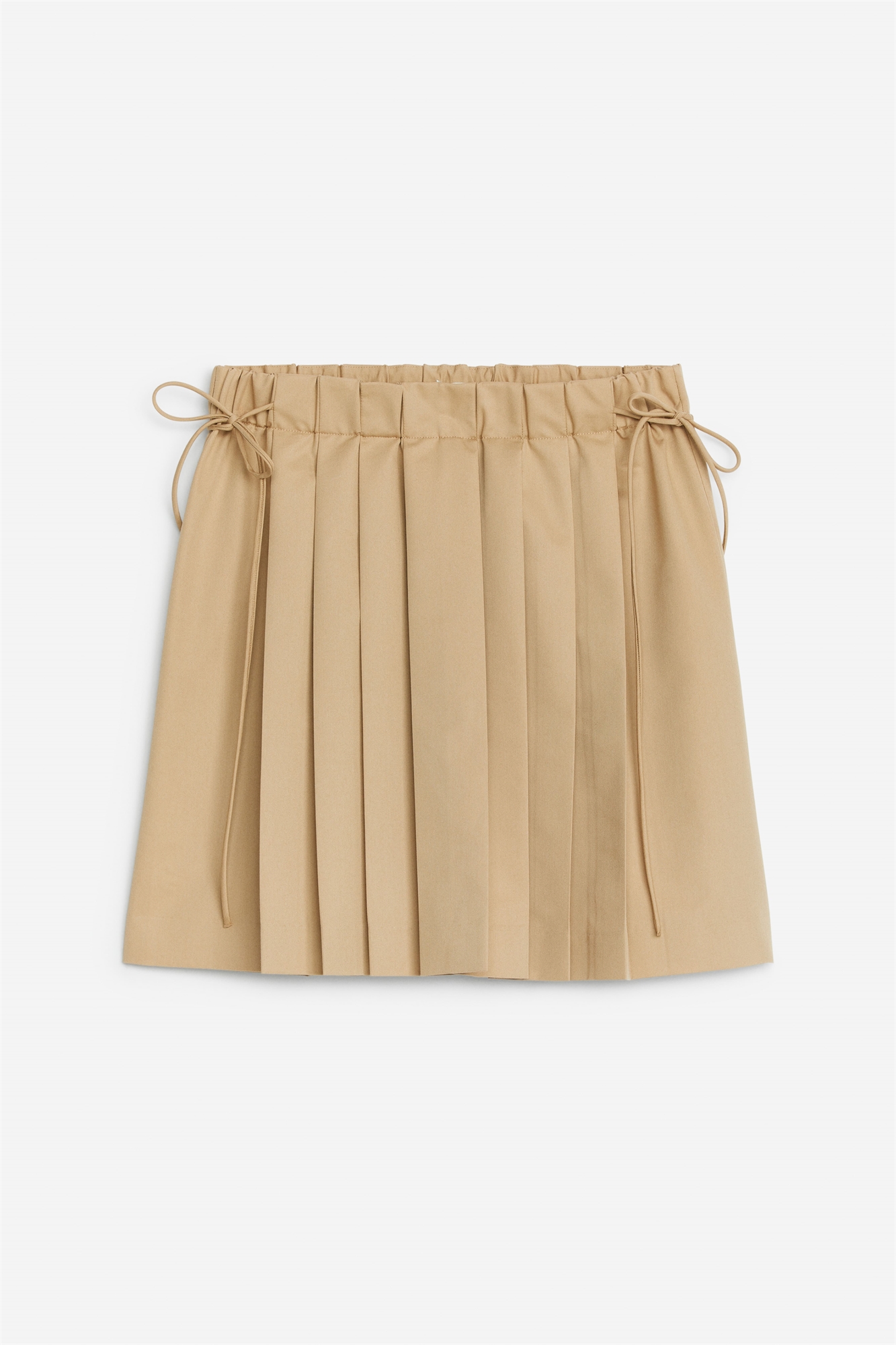 Плиссированная юбка-миди из хлопкового микса. Кокетливые складки на эластичной талии. Тонкие завязки по бокам.