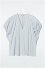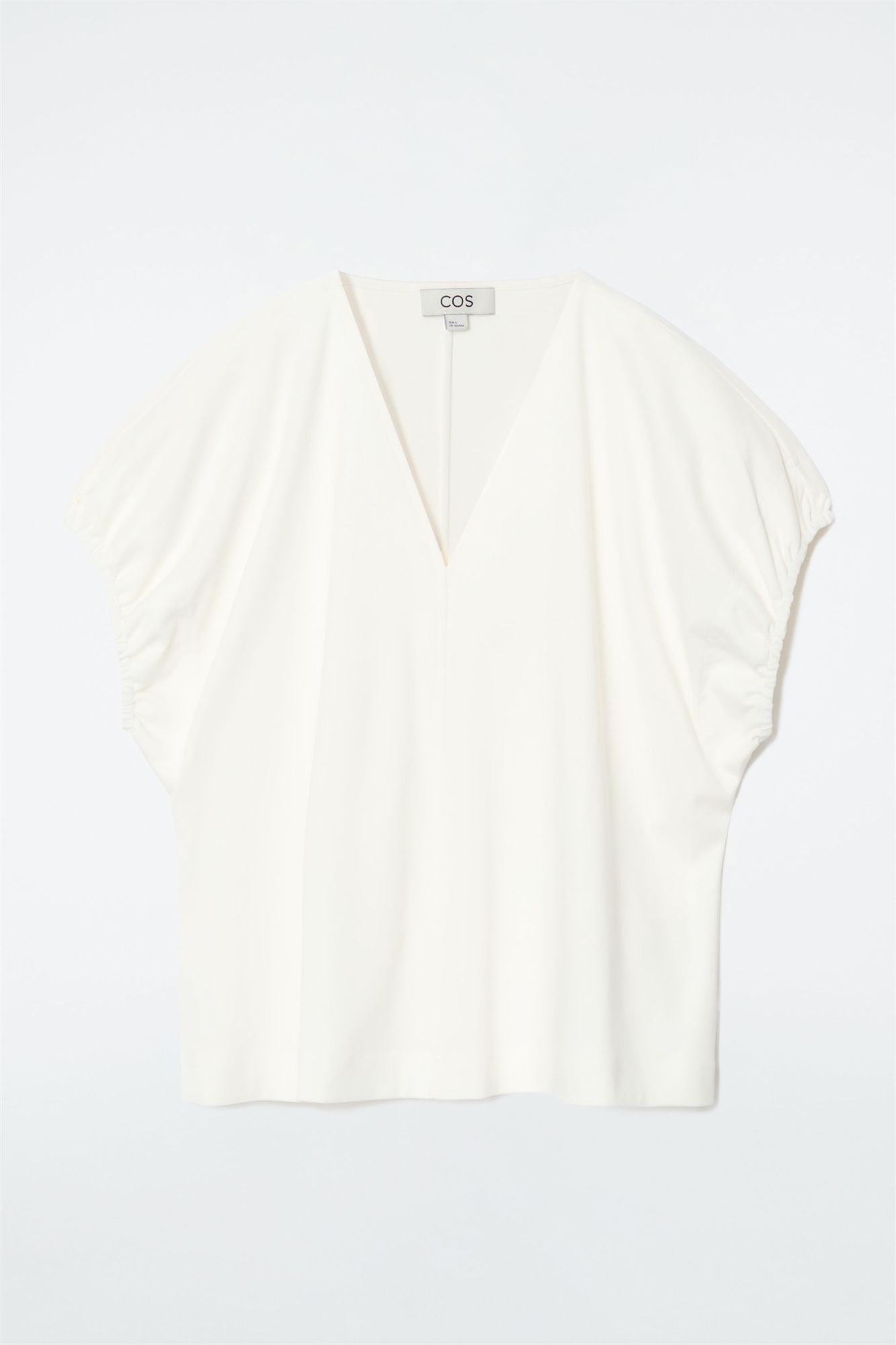 Эта блузка нежного цвета слоновой кости отличается женственным силуэтом и собранными, мягко драпирующимися рукавами. Подчеркните V-образный вырез, надев его со скульптурным ожерельем. Regular fit Внешняя ткань: 100% хлопок. Детали не учитываются/Машинная стирка Длина по спинке в размере S = 60 см/Модель носит размер S