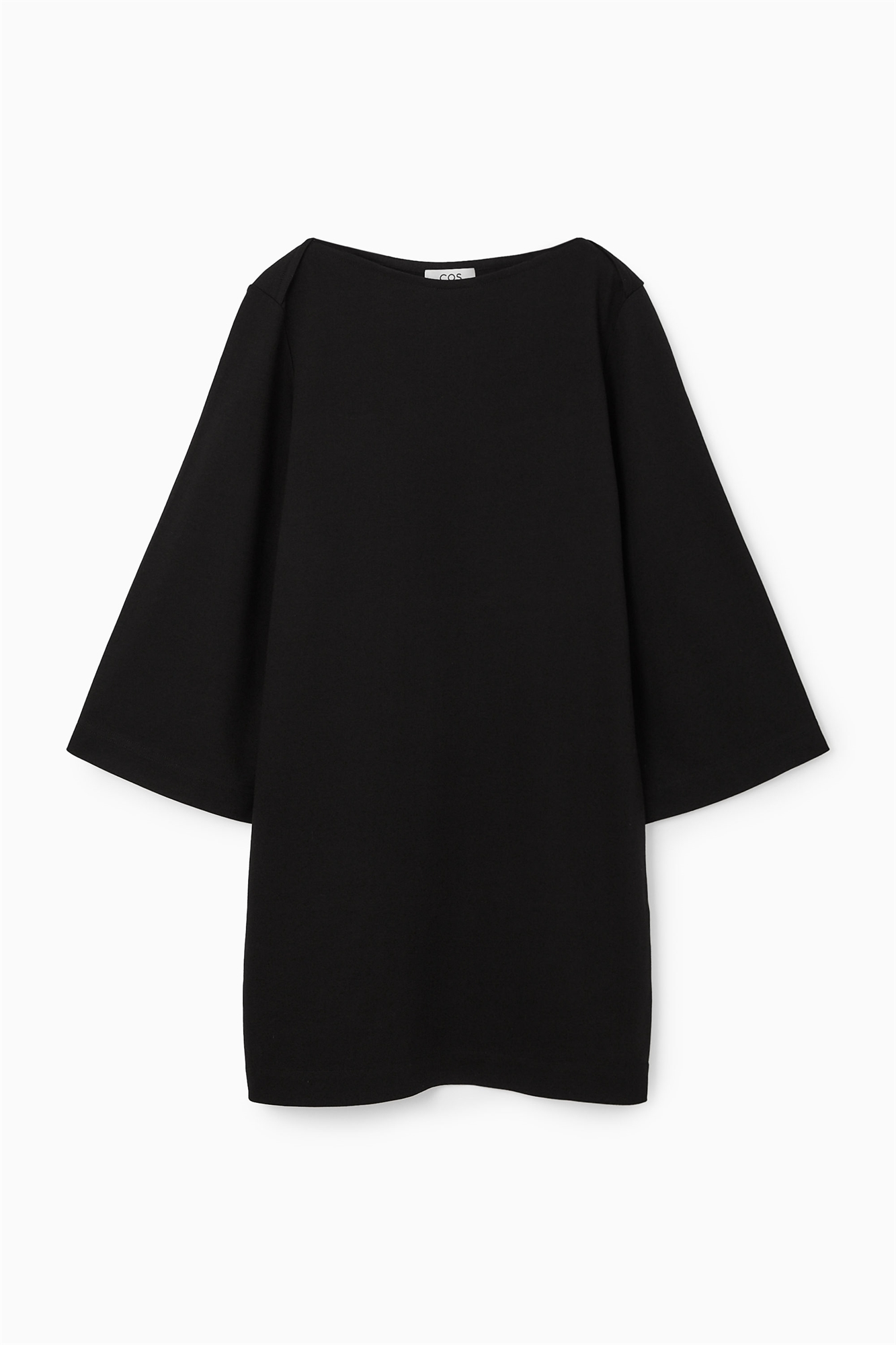 Непринужденное платье-футболка будет переосмыслено для сезона весна-лето 2024. Этот черный вариант имеет вырез-лодочку и широкие расклешенные рукава с разрезами на манжетах. Органический хлопок приятен на ощупь, а содержание вискозы обеспечивает прекрасную драпировку. Регулярный крой, длина мини Рукава длиной три четверти Органический хлопок выращен из семян, не содержащих ГМО, без использования химических удобрений и пестицидов Верхний материал: 70% органический хлопок, 30% вискоза. Детали исключены/Машинная стирка Длина по спинке в размере S = 83 см/Модель носит размер S