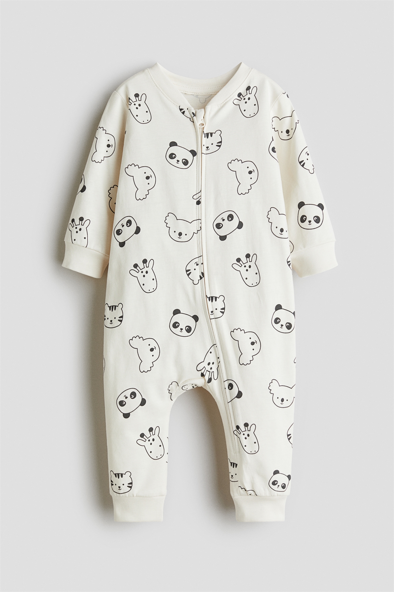 Спальный костюм из супермягкого хлопкового джерси с принтом на всю длину. Застежка-молния спереди, которая продолжается по одной ноге и имеет защиту подбородка от натирания в верхней части. Длинные рукава с манжетами и длинные ноги с ребристыми краями.