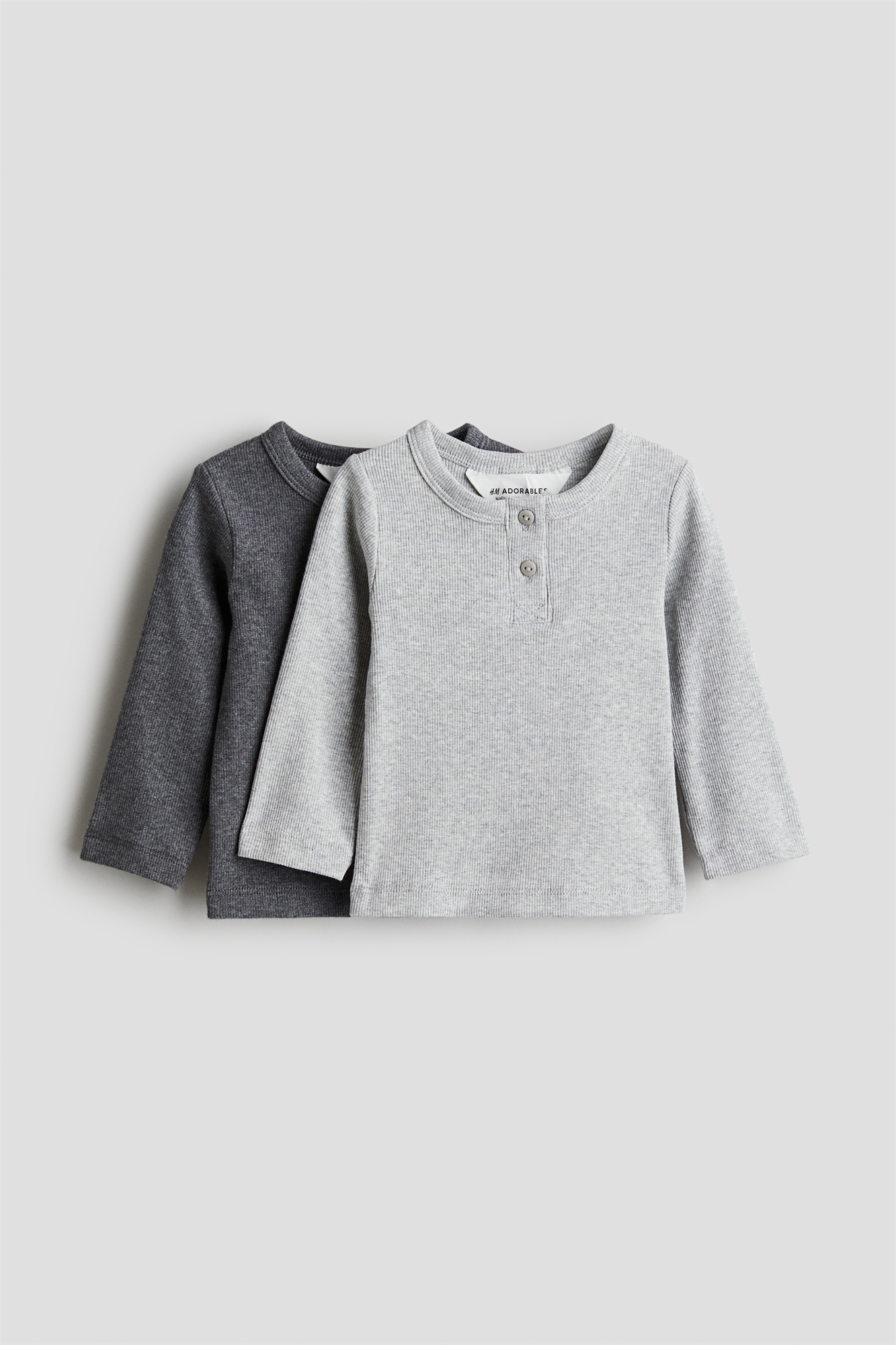 H&M Adorables. Топы с длинными рукавами из мягкого ребристого джерси, изготовленного из высококачественного хлопка. Круглый вырез с ребристой отделкой и застежка на пуговицах. Наш хлопок имеет высокий показатель GSM, что означает более плотное и прочное качество без ущерба для комфорта. Коллекция H&M Adorables - это подборка качественных вещей с высоким уровнем комфорта, которые не подвластны времени.