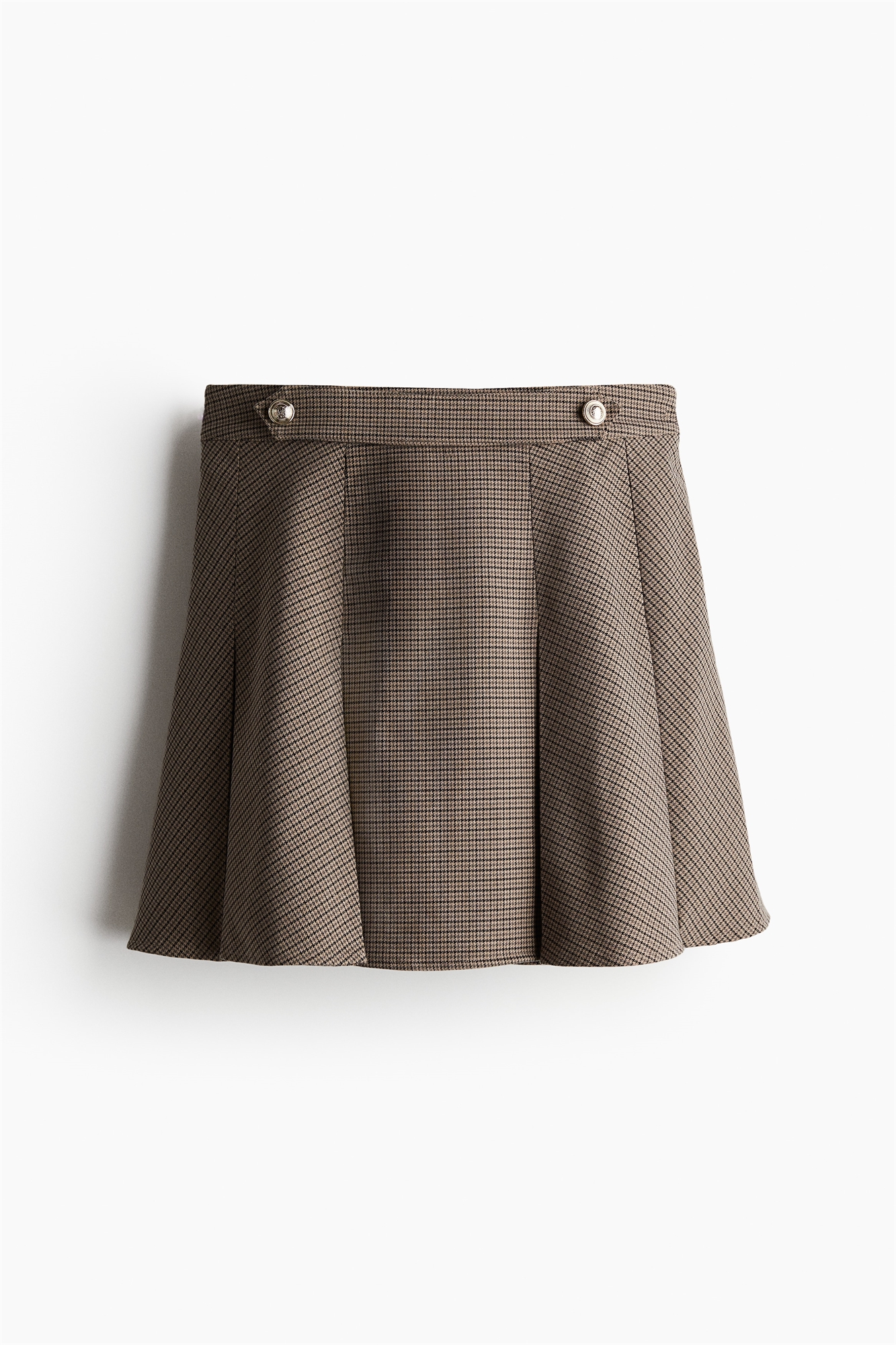 Короткая юбка А-линии из тканого материала со складками для придания объема. Скрытая молния и застежка-крючок с одной стороны.