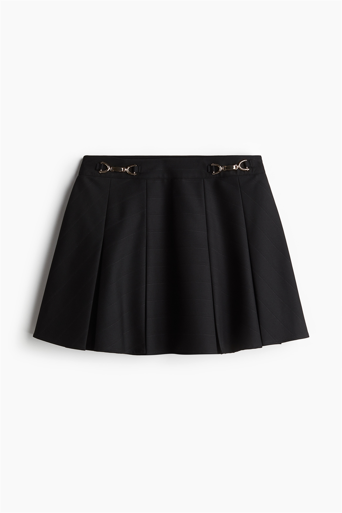 Короткая юбка А-линии из тканого материала со складками для придания объема. Скрытая молния и застежка-крючок с одной стороны.