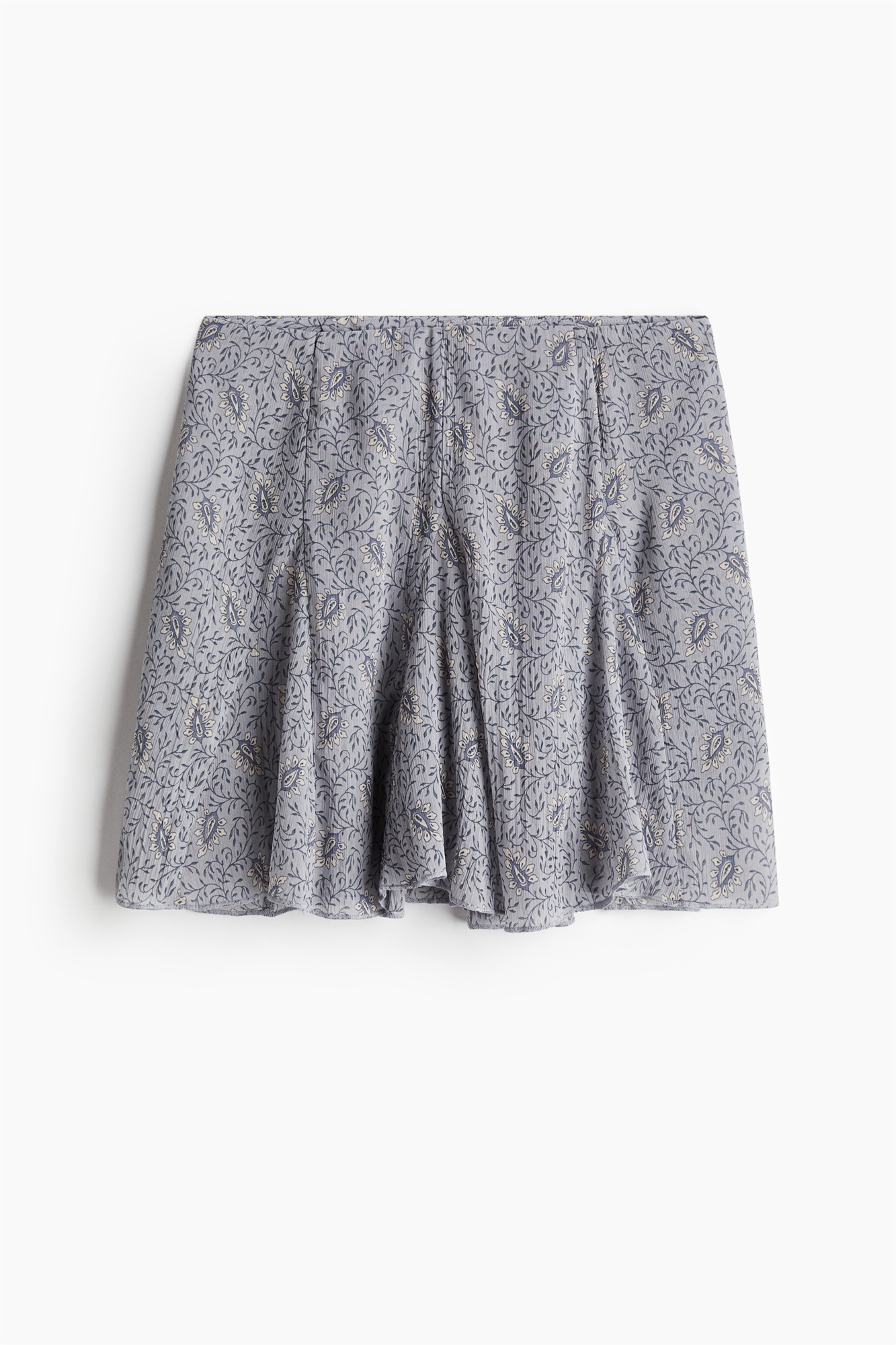 Короткая юбка из крепового полотна с высокой талией, потайной застежкой-молнией с одной стороны и вставками по подолу для создания расклешенного силуэта. Шорты на подкладке.