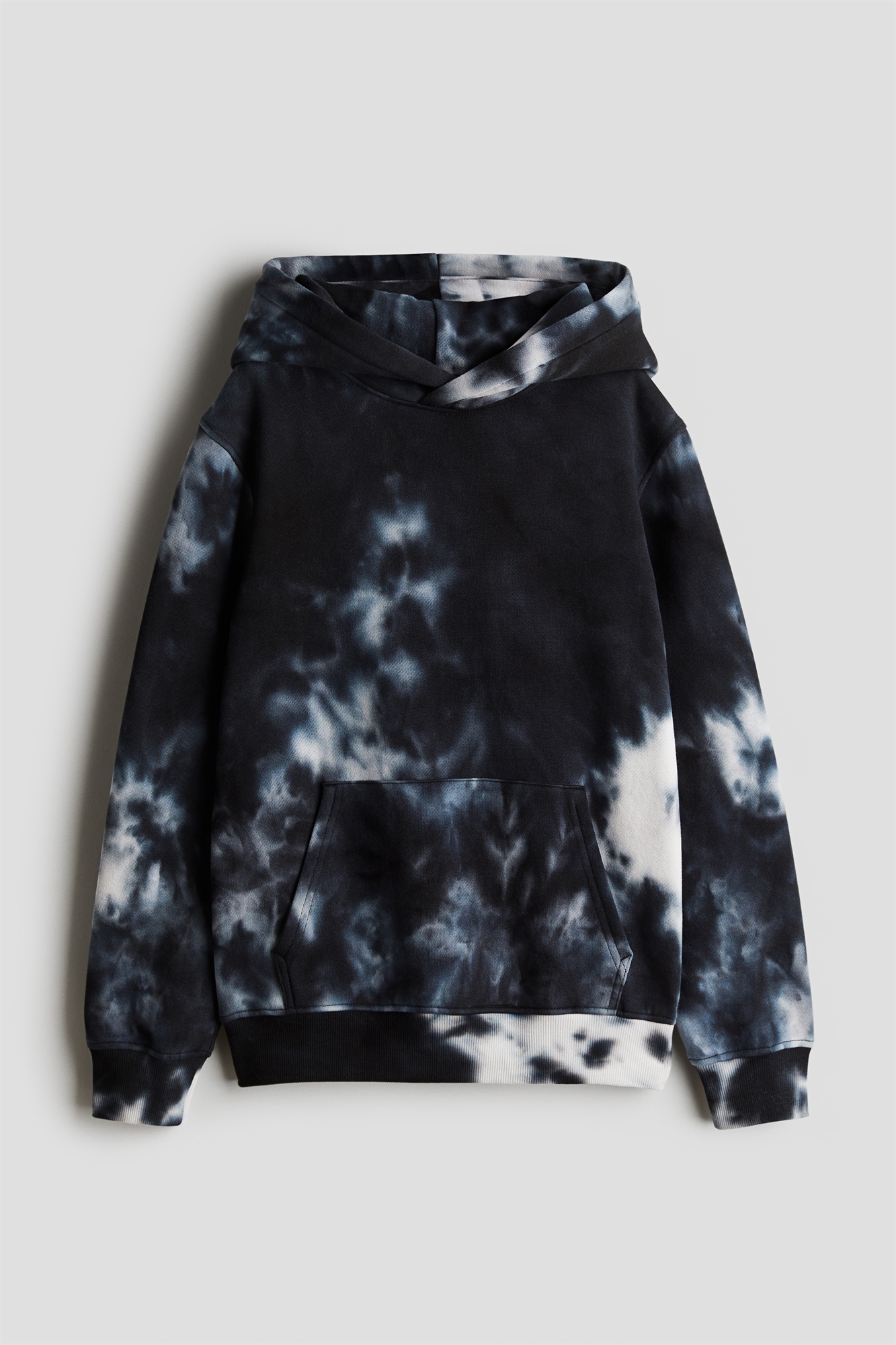 Толстовка из хлопковой ткани с мягким начесом внутри. Капюшон на подкладке, завязки спереди, спущенные плечи и карман-кенгуру. Ребристые манжеты и подол.