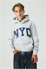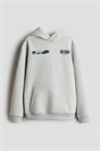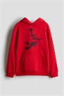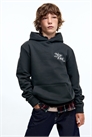 Толстовка из хлопковой ткани с мягким начесом внутри. Капюшон на подкладке, завязки спереди, спущенные плечи и карман-кенгуру. Ребристые манжеты и подол.