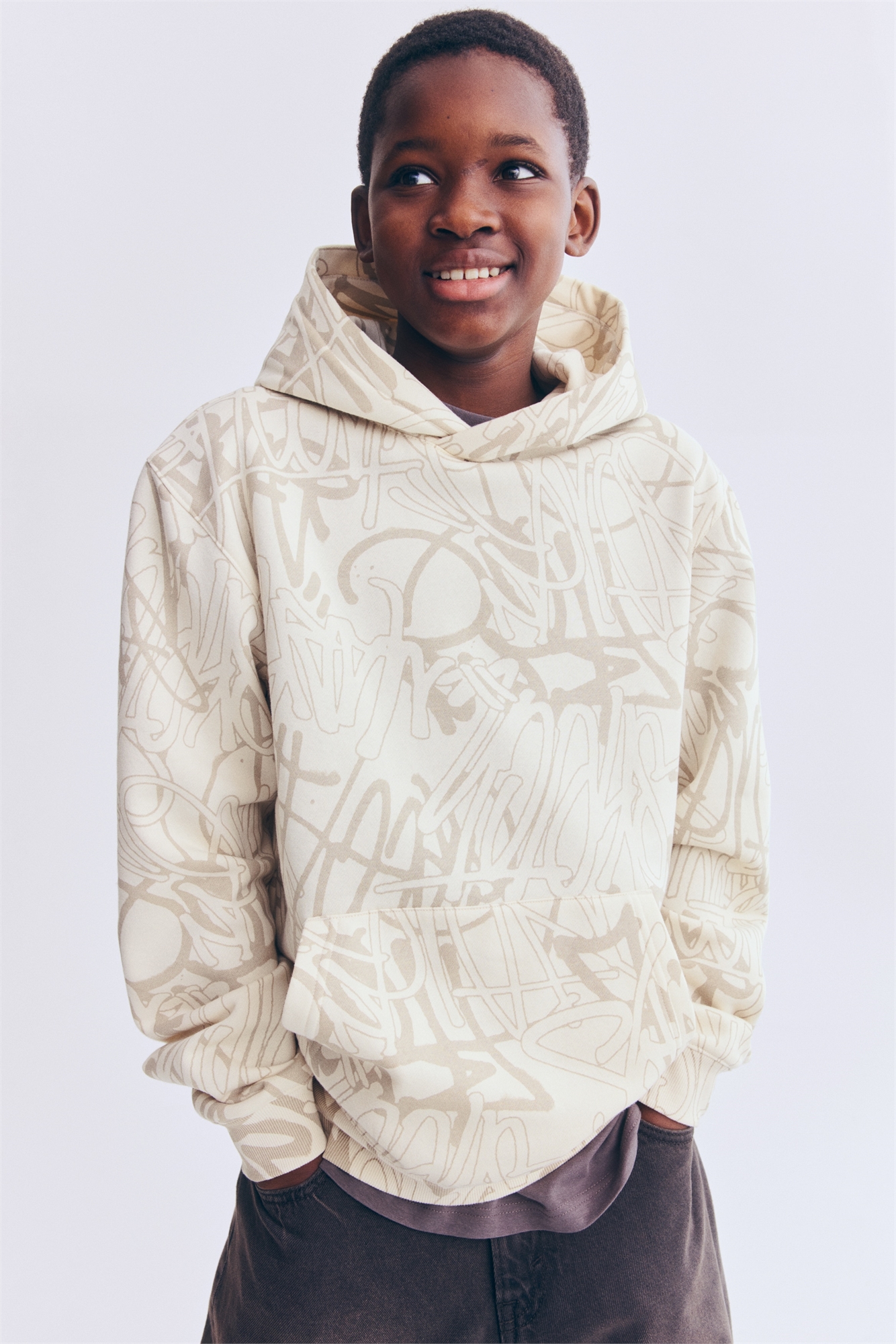 Толстовка из хлопковой ткани с мягким начесом внутри. Капюшон на подкладке, завязки спереди, спущенные плечи и карман-кенгуру. Ребристые манжеты и подол.
