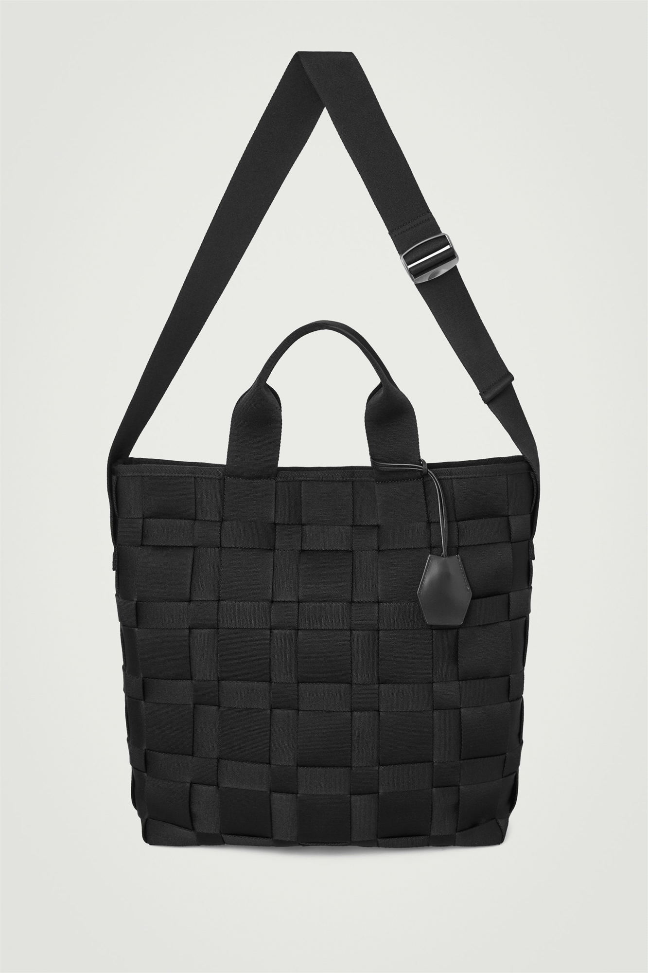 Прагматичная и практичная современная сумка-тоут сплетена из полосок прочной ткани из переработанного полиэстера. Она оснащена кожаным брелоком для ключей, который продевается вокруг ручек для переноски, и имеет вместительное основное отделение со структурированным дном для хранения предметов первой необходимости. Ремешок для ношения через плечо позволяет регулировать размер. Застежка на кнопки Лучшая альтернатива обычному полиэстеру - переработанный полиэстер, изготовленный из отходов, полученных до и после переработки отходов Оболочка: 100% переработанный полиэстер. Без учета отделки Высота: 39 см, Ширина: 36 см, Глубина: 11 см