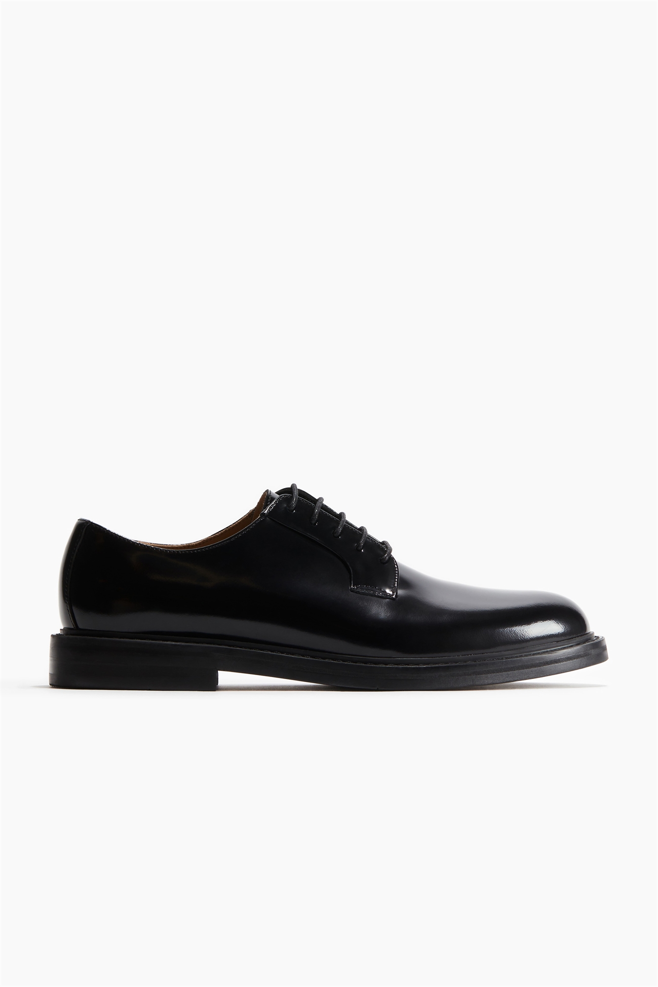 Туфли-дерби из мягкой кожи с открытой шнуровкой спереди. Кожаные подкладка и стелька, резиновая подошва с рисунком. Каблук 3 см.
