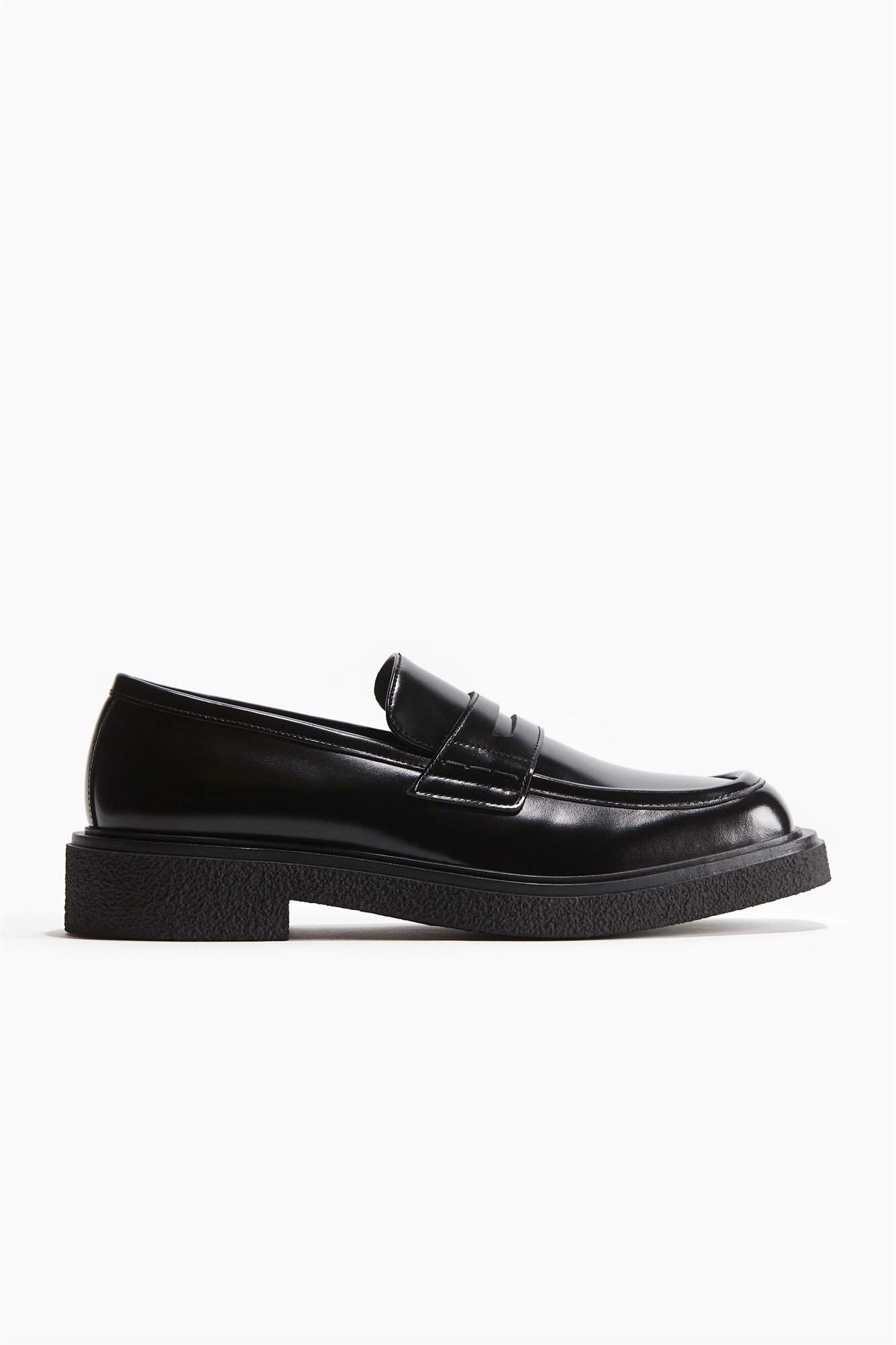 Лоферы с квадратными носками и декоративной вкладкой спереди. Холщовая подкладка и толстая подошва с узором. Каблук 3,3 см.