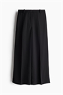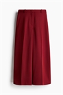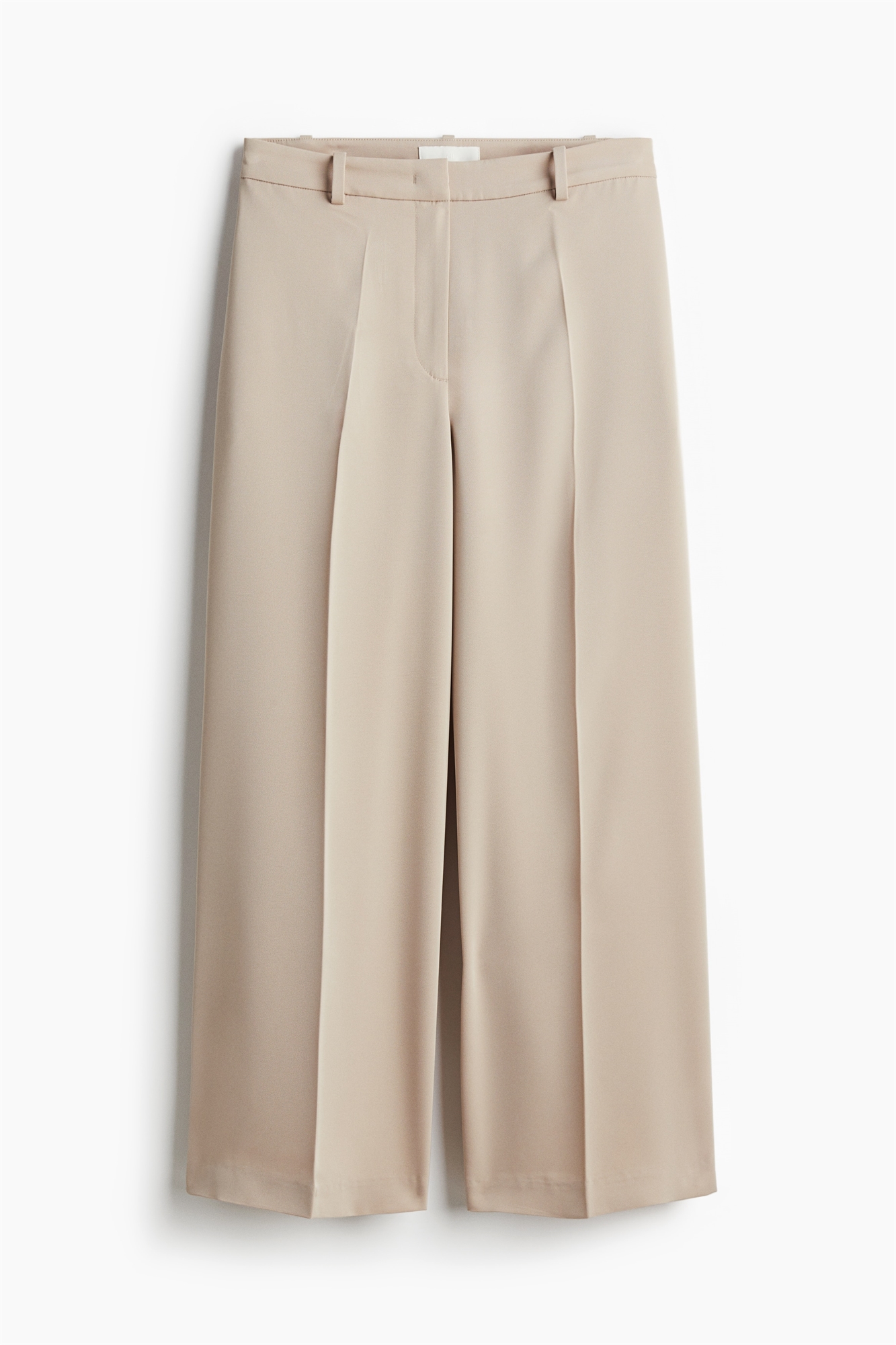 Приталенные брюки из саржи с высокой талией и ширинкой на молнии со скрытой пуговицей и застежкой на крючок и глазок. Небрежные боковые карманы, фальшивые карманы сзади и широкие, длиной до щиколотки, ноги со складками спереди и сзади.