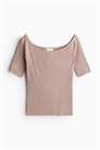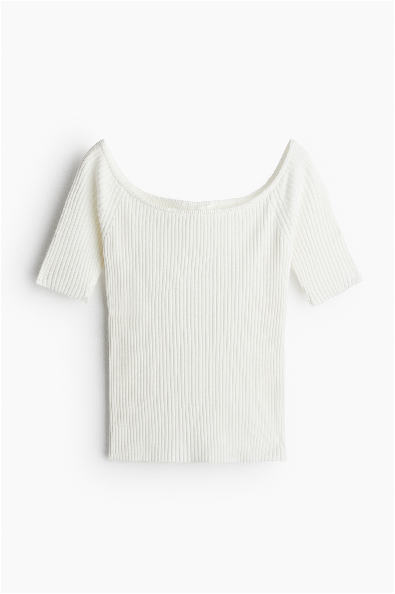 Облегающий топ без плеч из трикотажа в рубчик с рукавами реглан длиной до локтя и узкой ребристой окантовкой по верху.