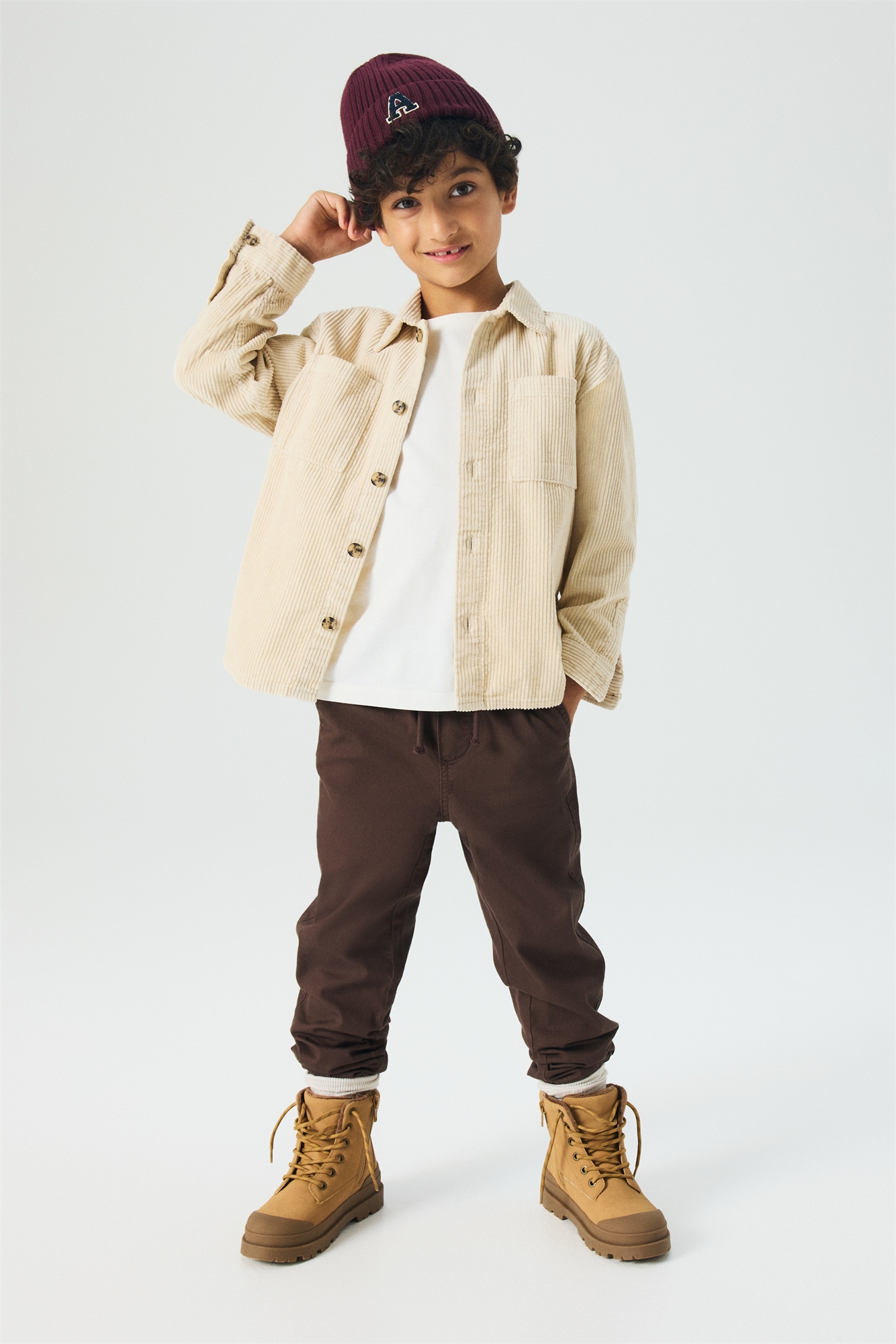 Джоггеры из мягкового хлопкового твила с мягкой подкладкой из джерси. Эластичный пояс с завязками, фальшивая ширинка, диагональные боковые карманы и эластичная резинка по краям.