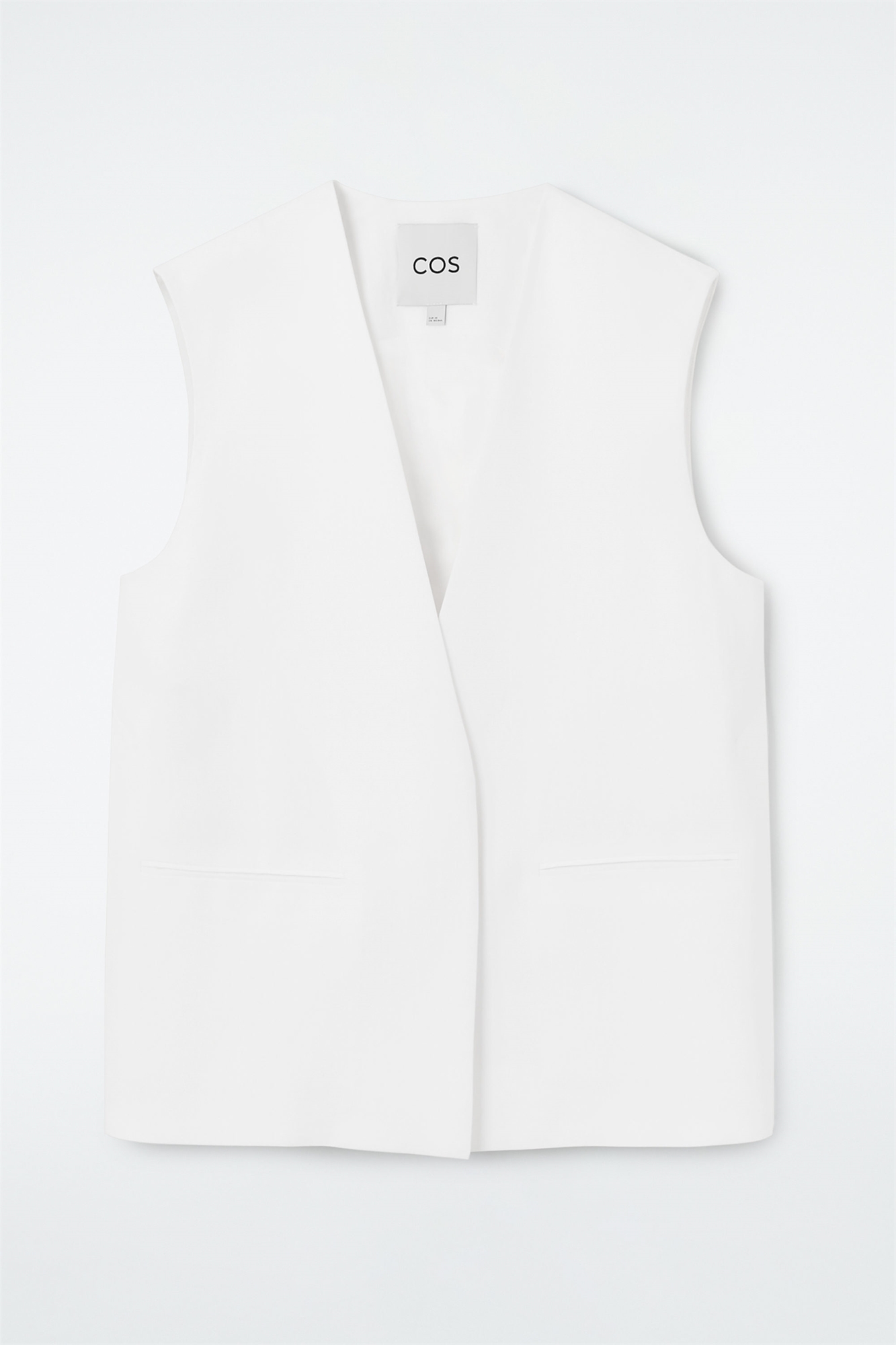 Классический жилет в этом сезоне приобретает современный вид. Эта модель, переосмысленная через призму современности, выполнена в чистом белом цвете и имеет угловатый заворот спереди, который поддерживает чистую форму. Накладные карманы - это тонкий намек на традиционный пошив, а глубокие боковые разрезы помогают ей естественно сидеть на брюках. Подберите к нему подходящие брюки и подходящий топ. Свободный крой V-образный вырез ECOVERO™ является торговой маркой Lenzing AG. Волокна вискозы получают из сертифицированных возобновляемых источников древесины с использованием процесса, снижающего воздействие на окружающую среду. Материал: 47% вискозы ECOVERO™, 27% льна, 26% вискозы. Подкладка: 100% вискоза. Без учета отделки / Сухая чистка Длина по спинке для размера EU 36 составляет 74,5 см / Модель носит размер EU 36