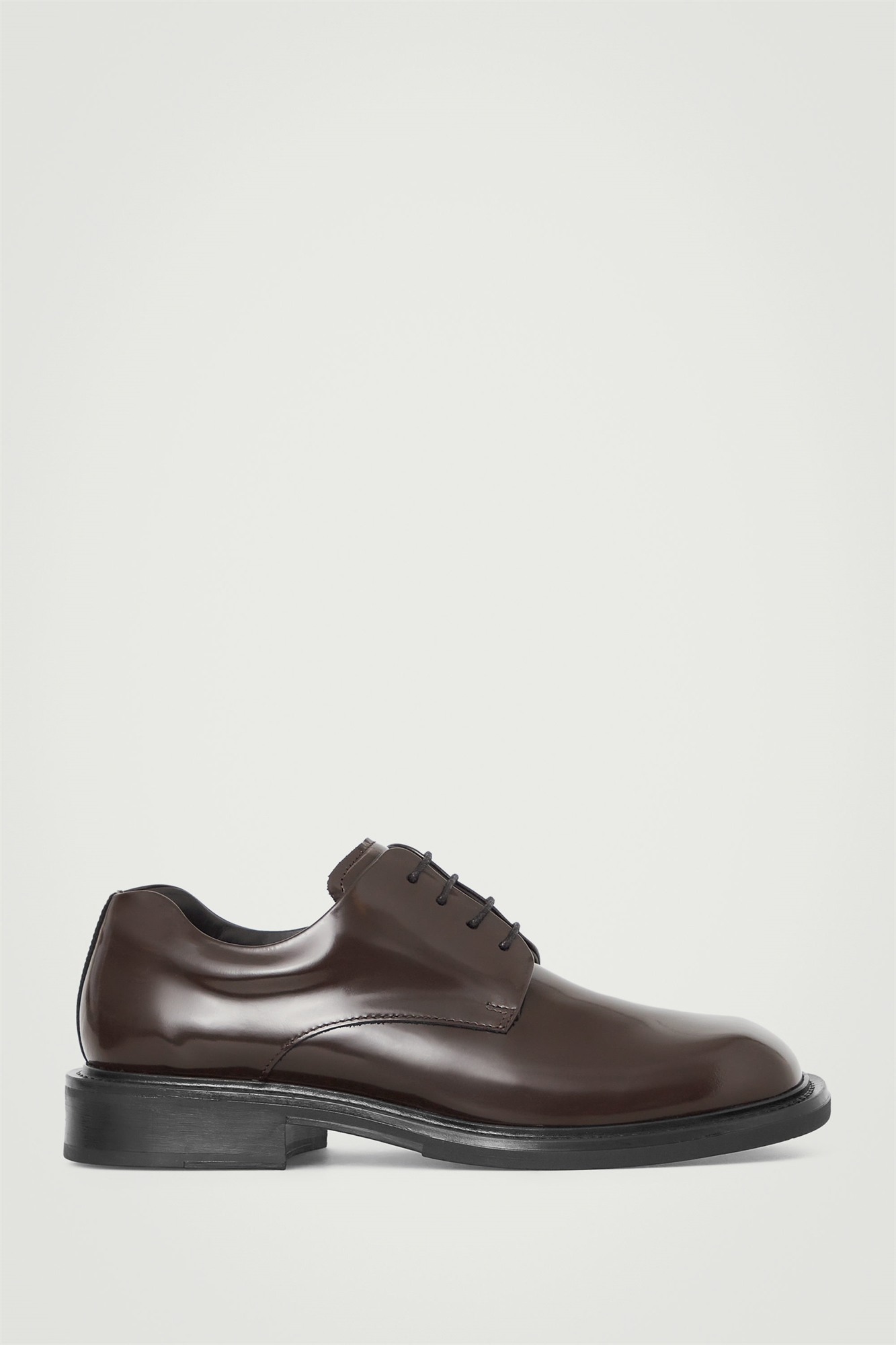 Эти современные туфли-дерби с квадратным носком насыщенного коричневого цвета изготовлены из блестящей кожи без хрома, которая со временем становится все более эластичной. Среди других деталей дизайна - вощеные шнурки и прочная резиновая подошва. Застежка на шнурках COS поддерживает ответственное производство через Leather Working Group Верх и подкладка: 100% кожа. Подошва: 100% термопластичная резина. Детали исключены