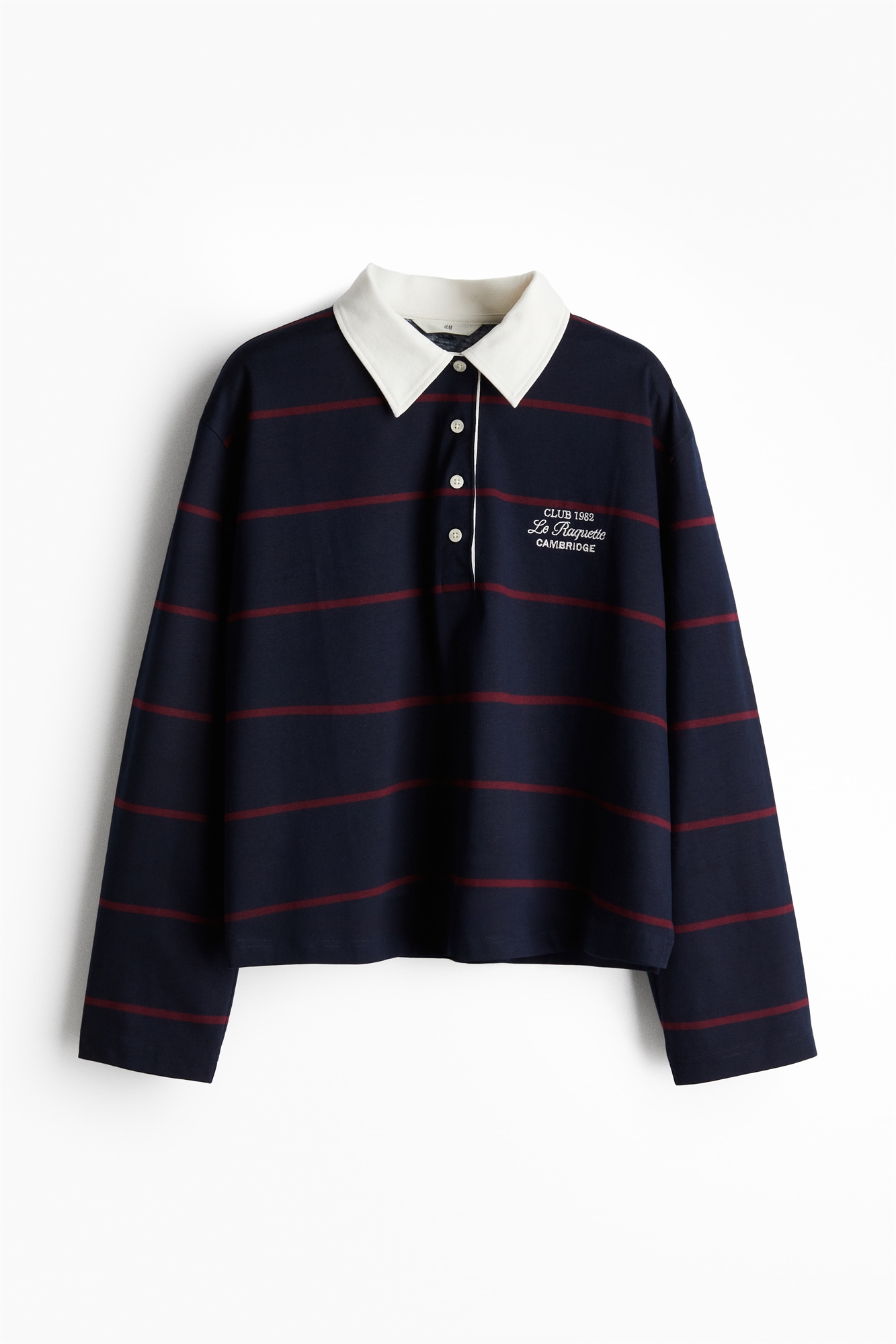 Рубашка-поло оверсайз из мягкого хлопкового джерси с воротником, застежкой на пуговицах, спущенными плечами и длинными рукавами. Небольшой разрез с каждой стороны подола.